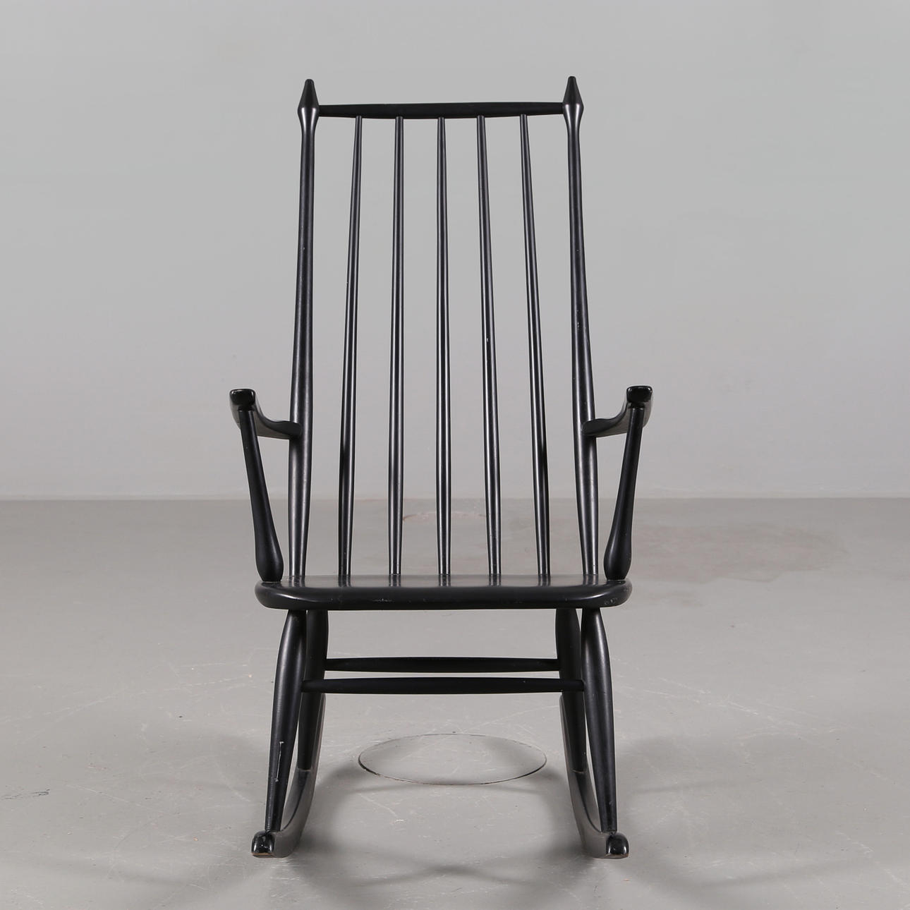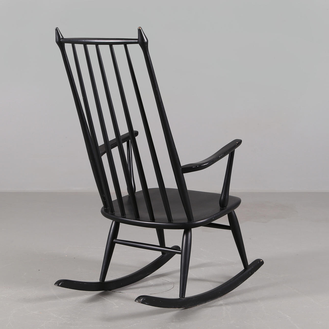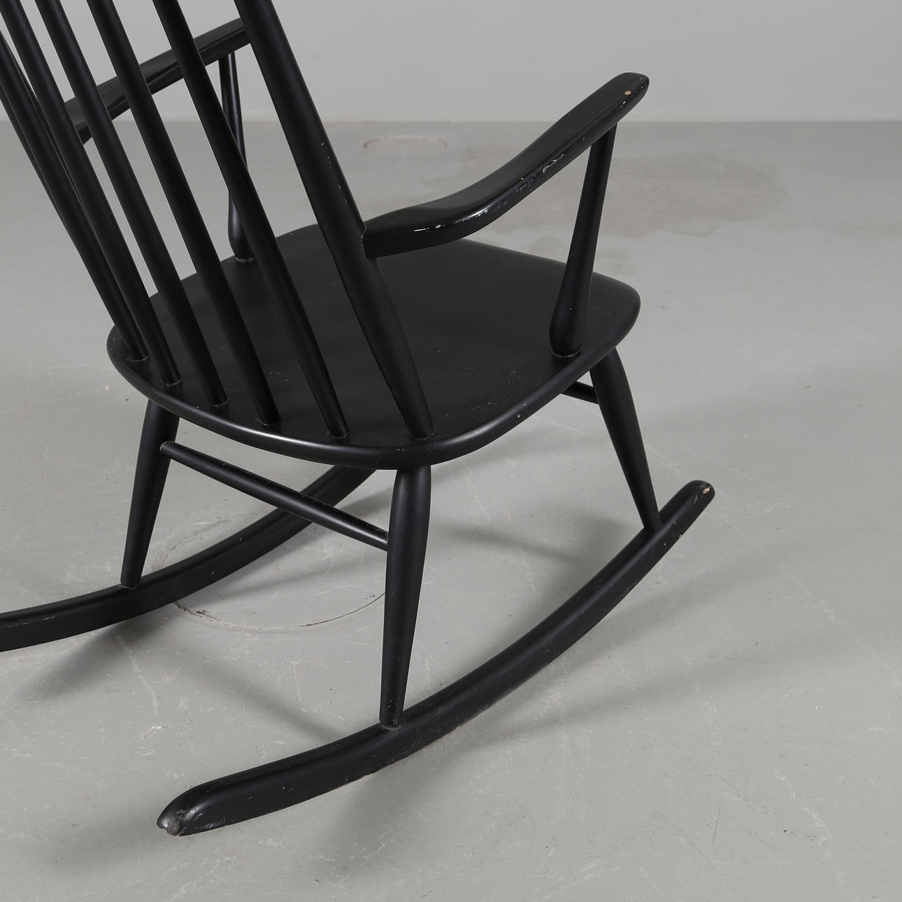 Gungstol i svartlackerat trä, 1960-talet.