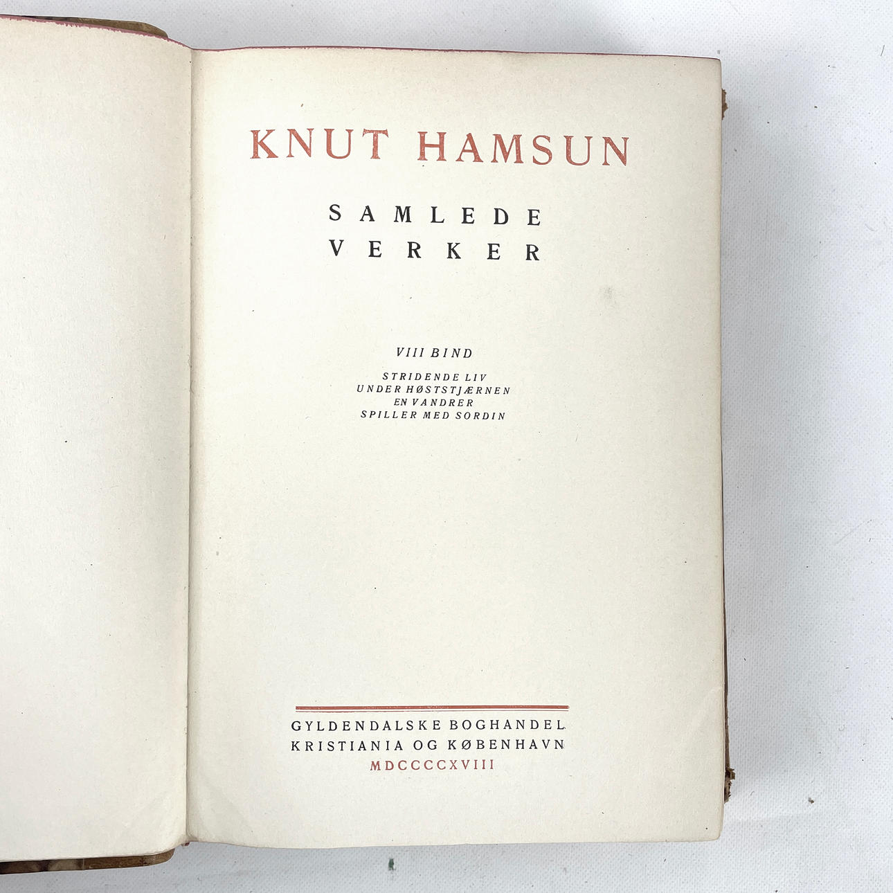 2 st skrifter Knut Hamsuns, på danska, Gyldendals Forlagstrykkeri, Köpenhamn, 1918.