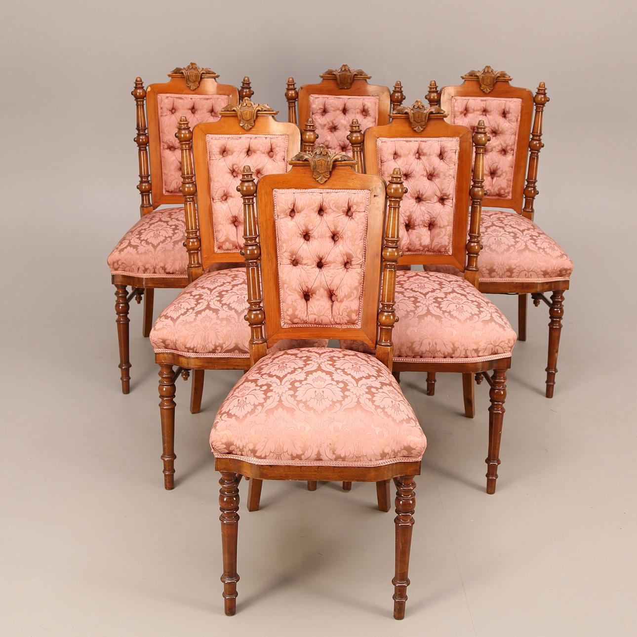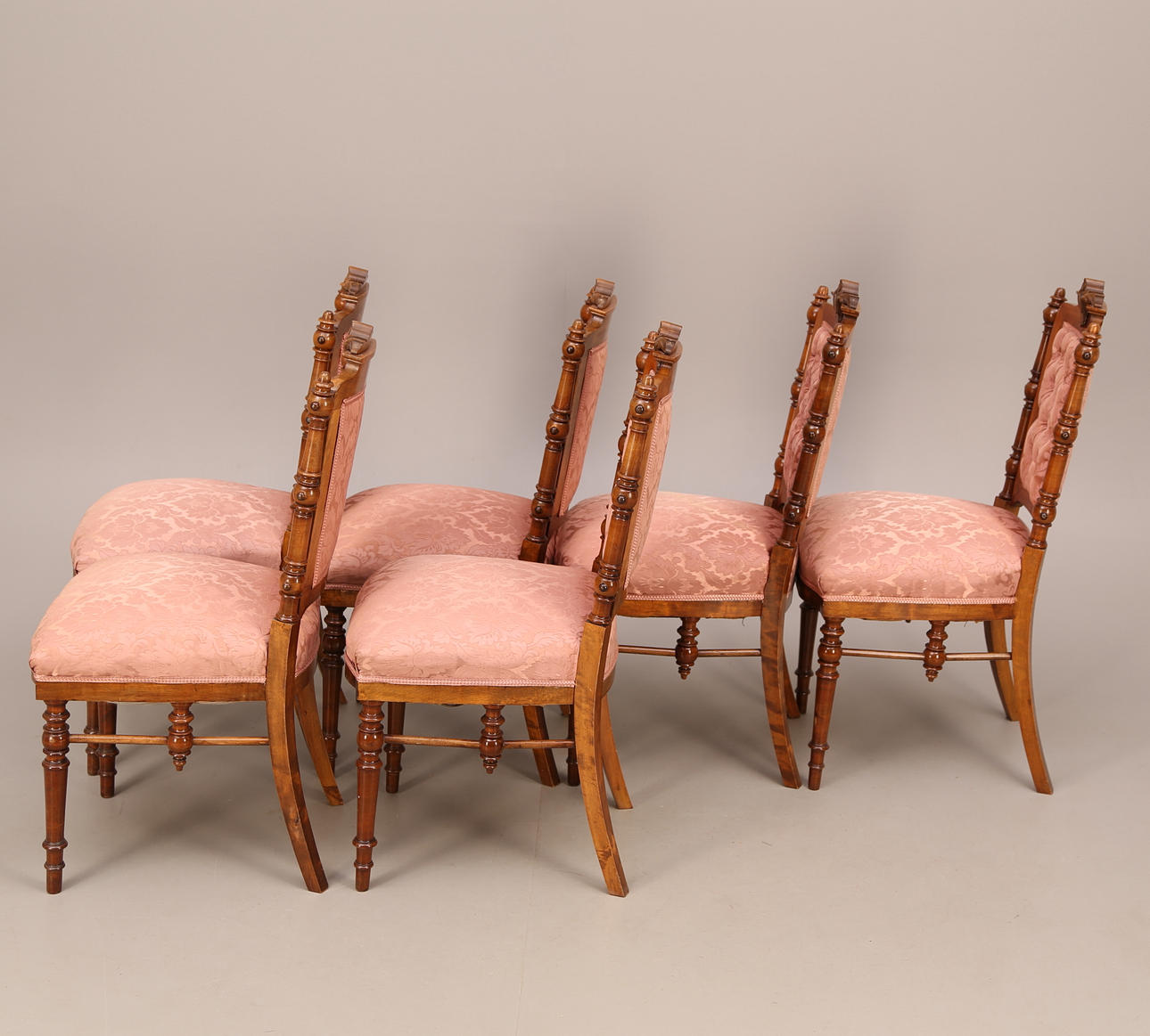 STOLAR, 6 st, rosa tyg, 1800-tal.