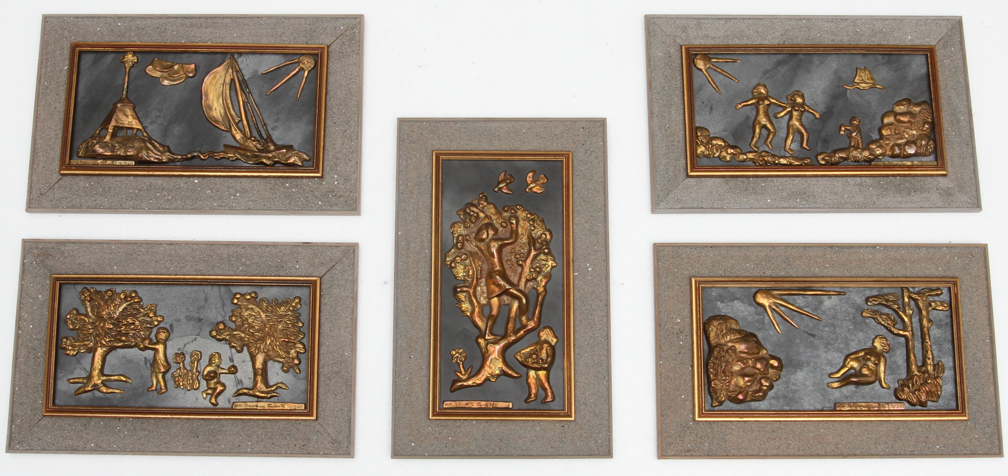 45953. ASTRI BERGMAN-TAUBE. Bronsreliefer, 5 st, 3/240, signerade -75.