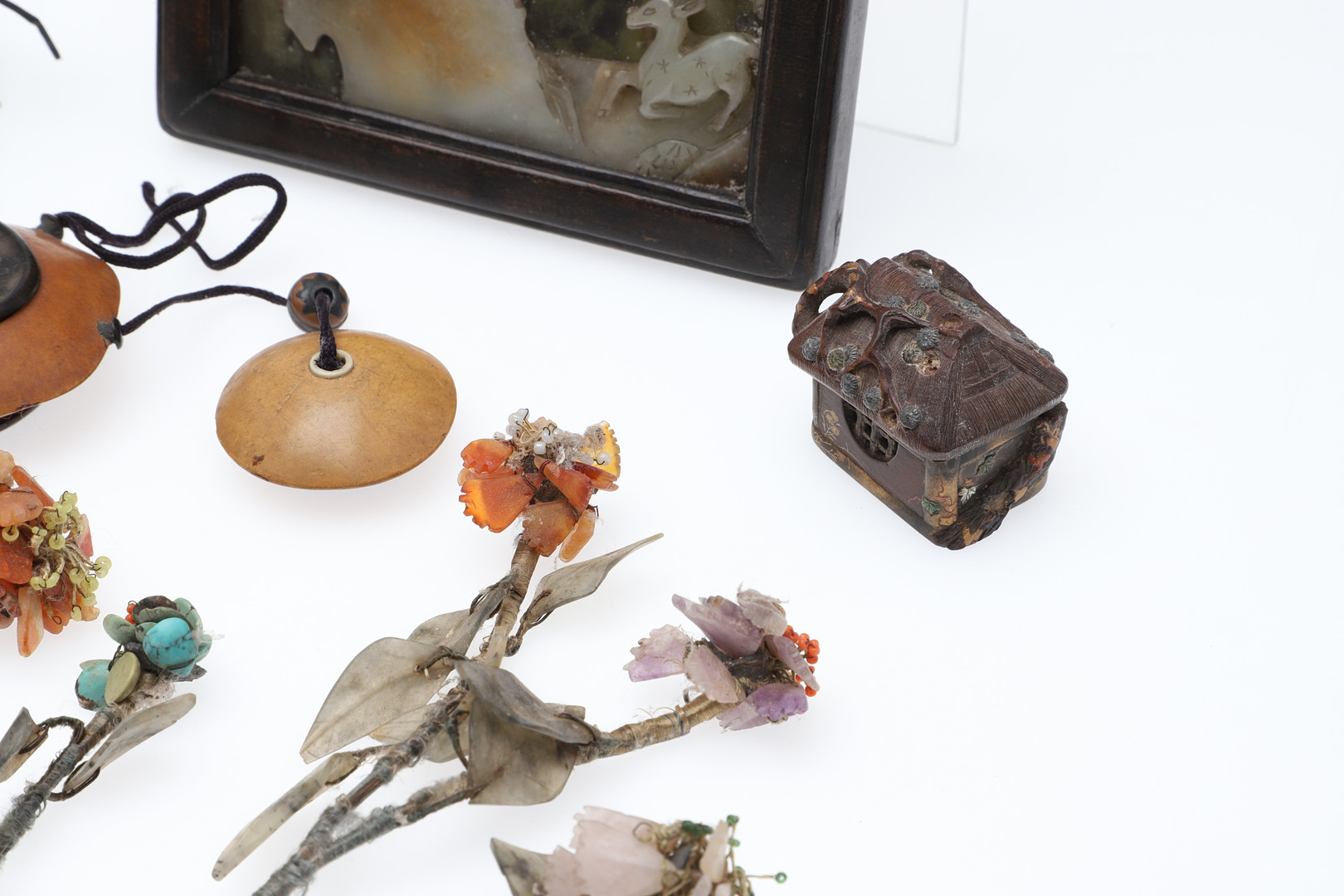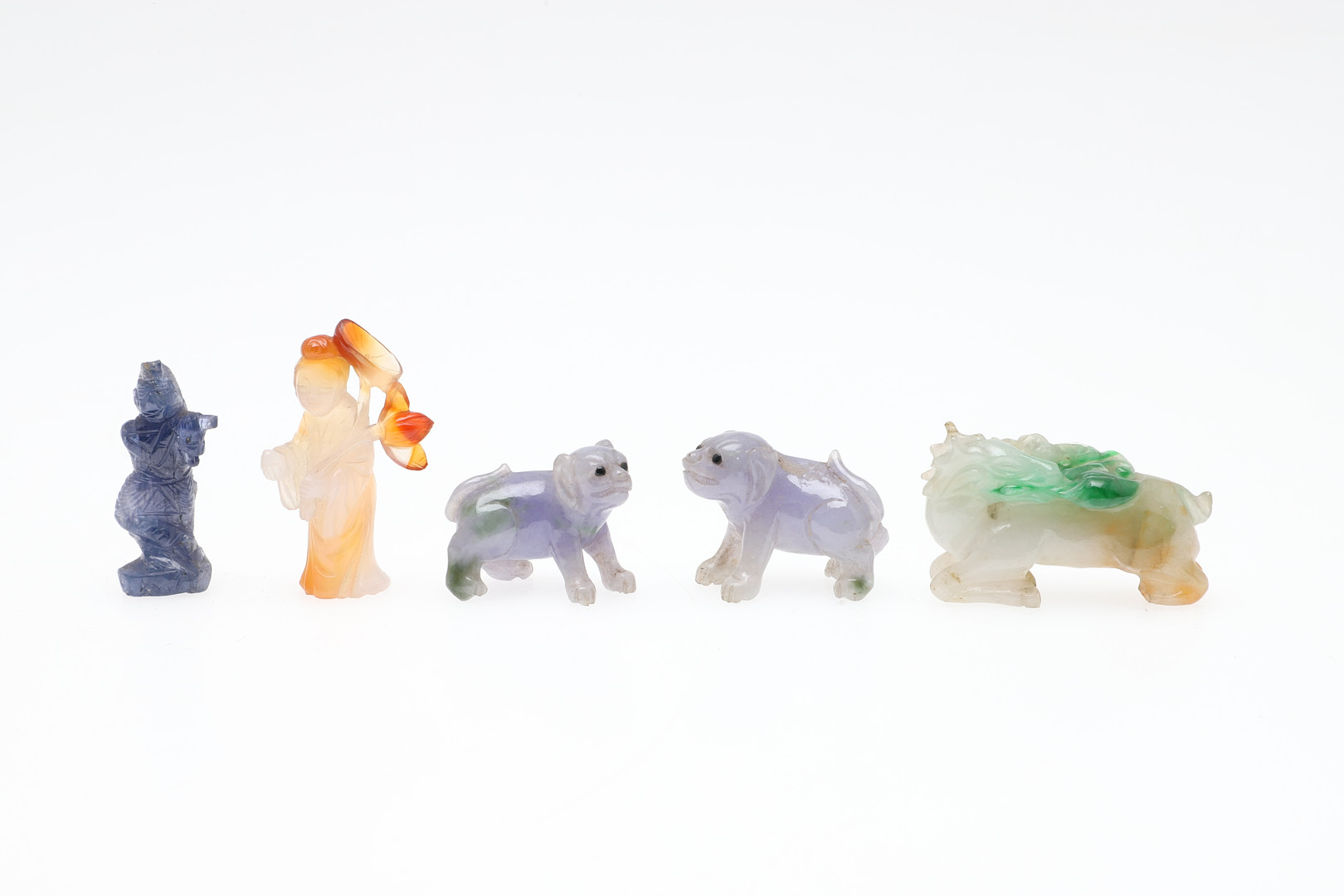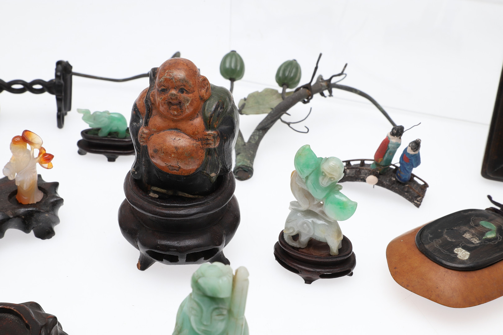 4598101. KINESISKA JADEFIGURER, TÄLJSTENPLATTA OCH ANDRA FÖREMÅL.