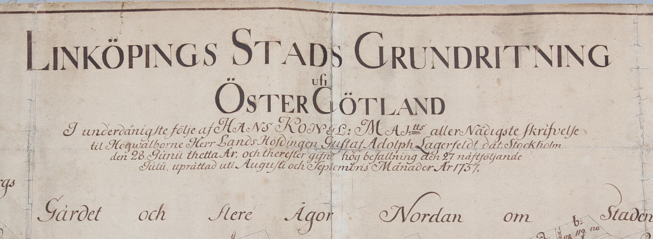 Upprättad av Commisionslantmätare Carl Jac. Wallberg (1705-1778) i augusti och september 1757.Papper uppfodrad på duk.53X86 cm.
