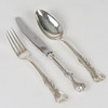 Gaffel, längd 17,5 cm, vikt 53,5 gram. Sked, längd 18,5 cm, vikt 55 gram. Kniv, längd 20,5 cm, vikt 57,5 gram.