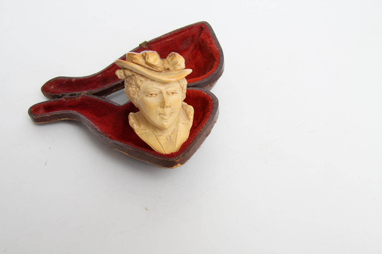 Bärnsten munstycke, L = 12 cm, i asken.