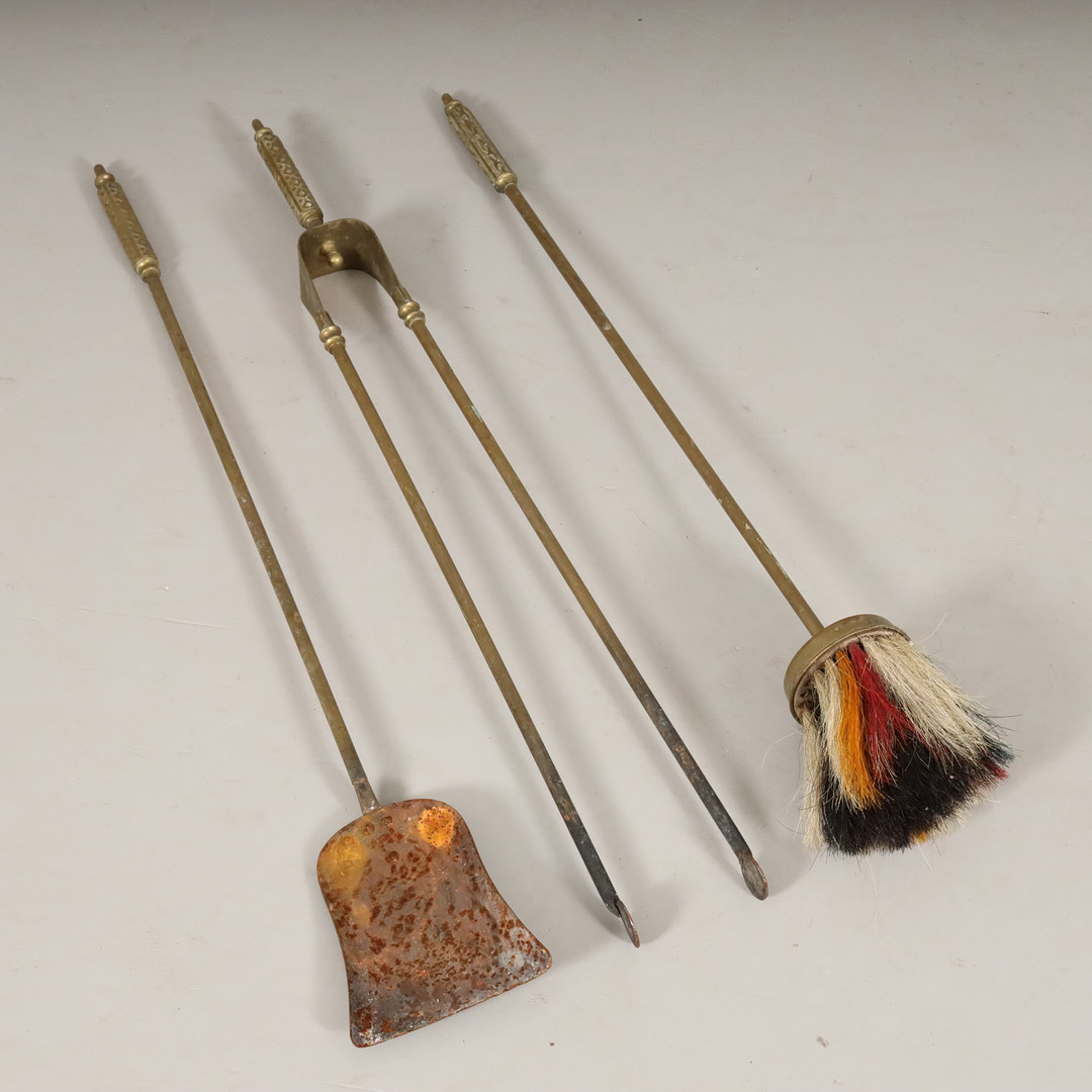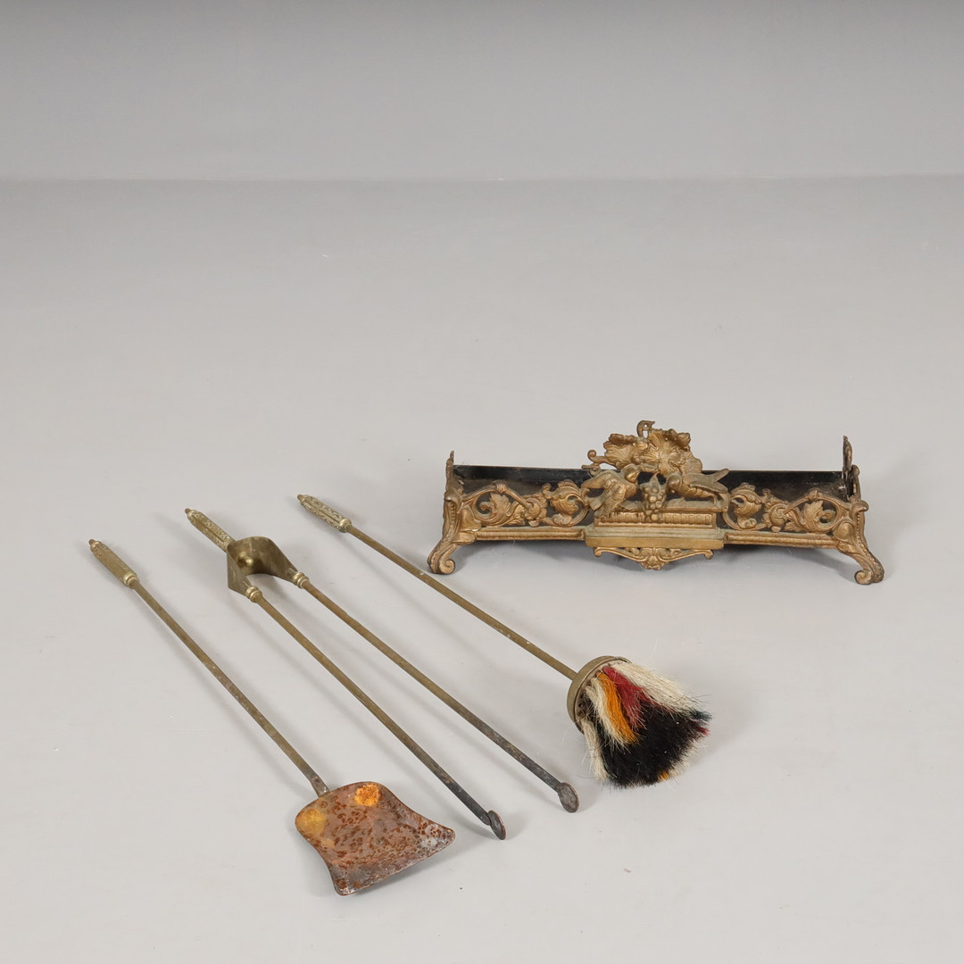 4617858. BRASSKYDD samt ELDSET, mässing 18/1900-tal.