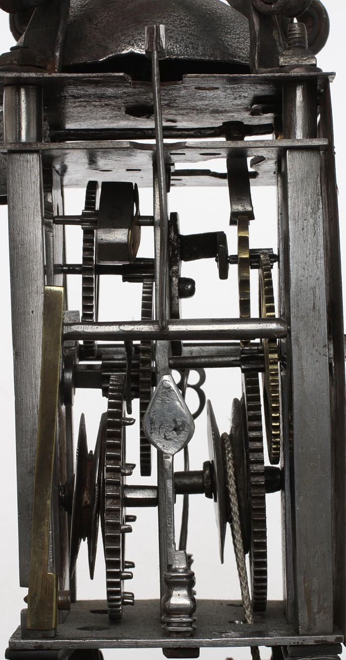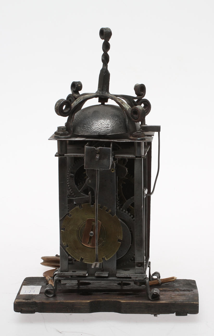 Signerad HM B. Ankargång. Lod och pendel finns. Ställning i järn, urtavla med romerska siffror. Höjd 34,5 cm.