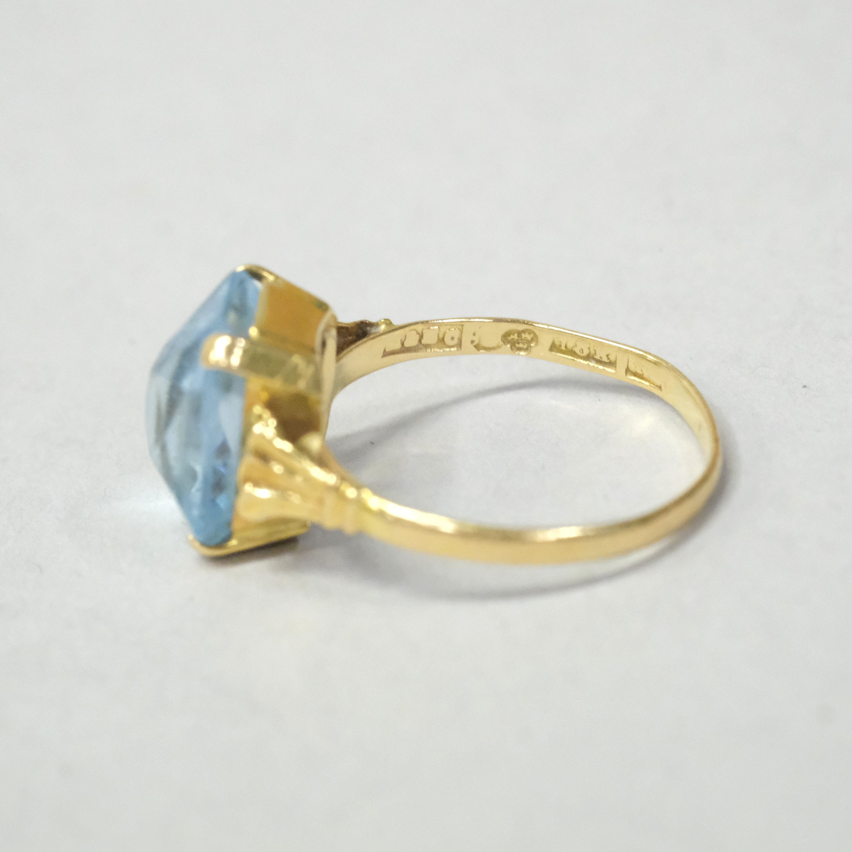 4621981. RING MED BLÅ STEN, 18K GULD.