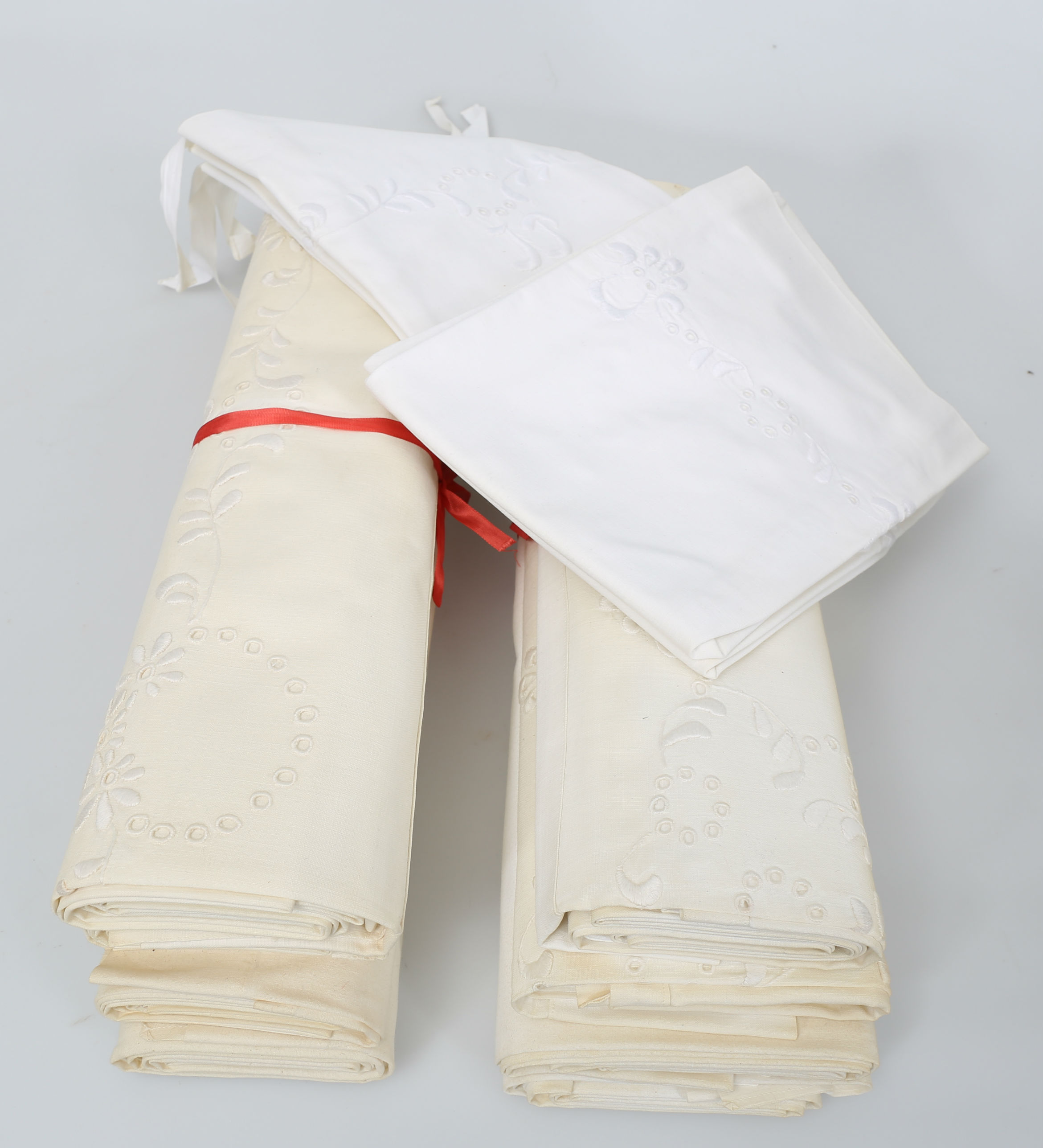 462303. BÄDDSET, bomull, 4 stycken, 1900-tal.