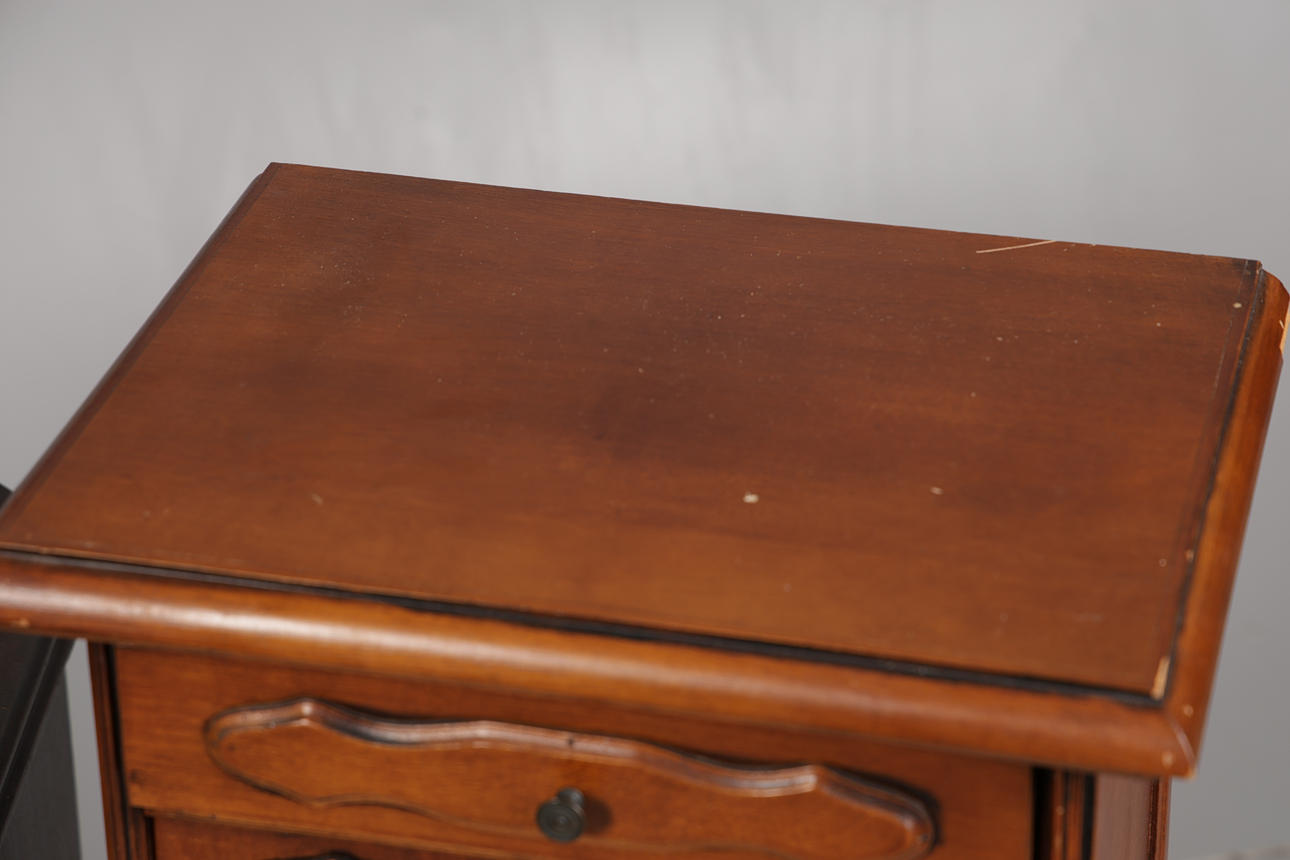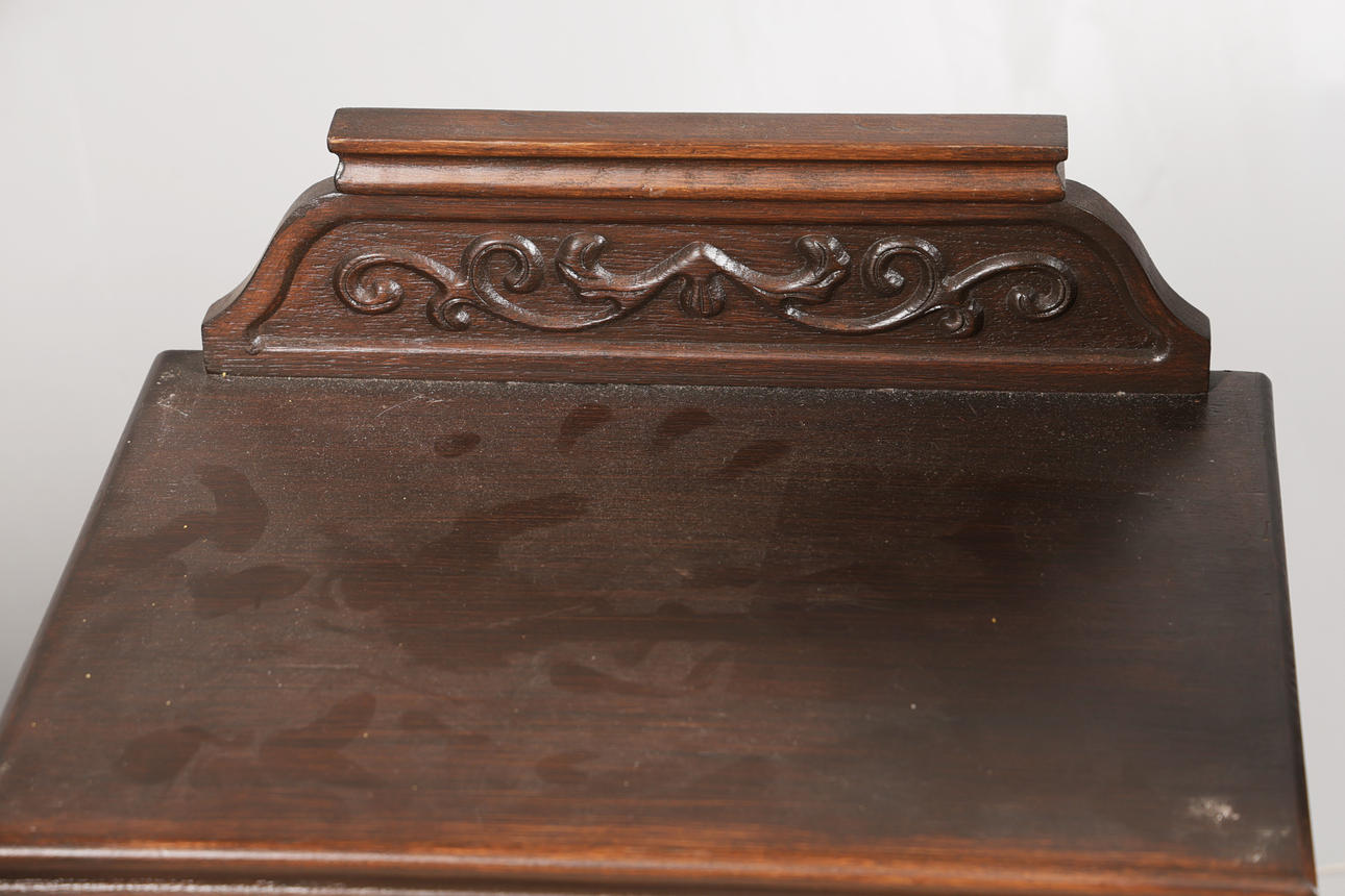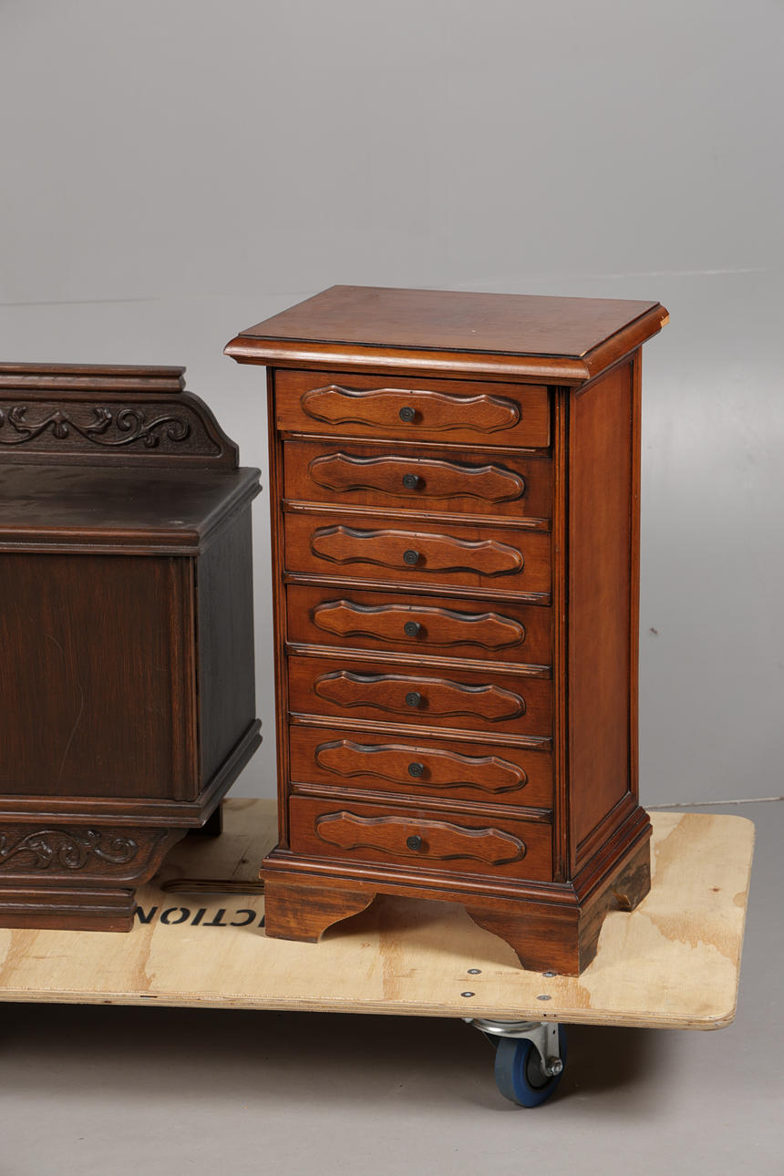 För att inkludera ett kortbord från slutet av 1800-talet, en liten byrå med sju lådor och ett litet skåp mäter kortbordet 70 cm höjd, 56,5 cm bredd, 35 cm djup. (3).
