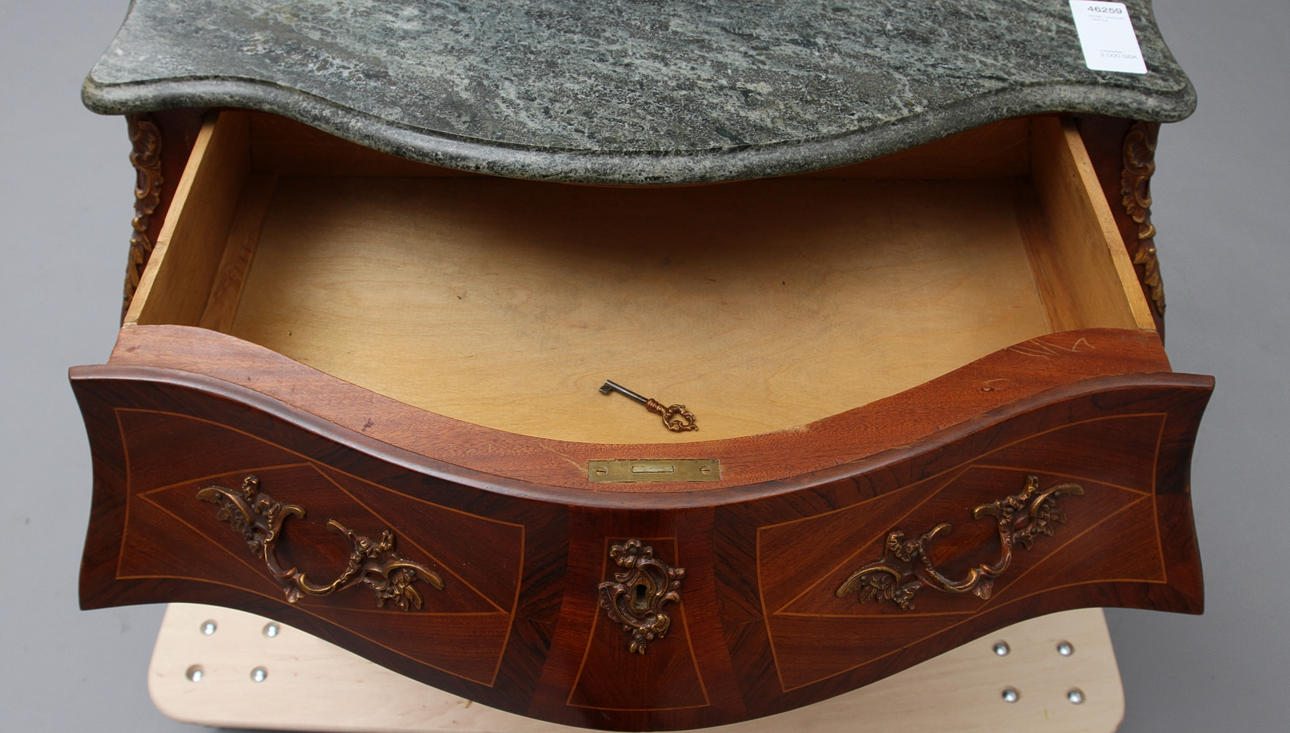 Inläggningar, stenskiva. Höjd 82, bredd 80, djup 50 cm.