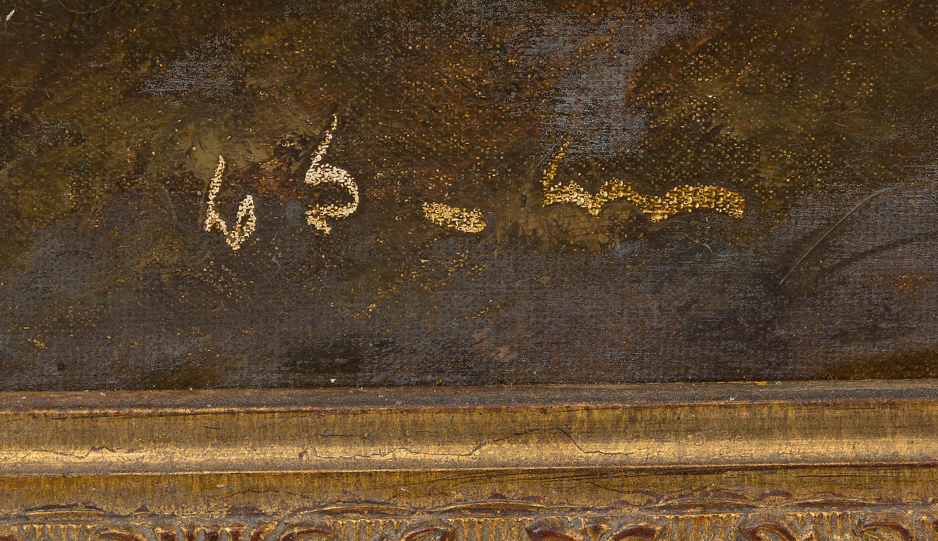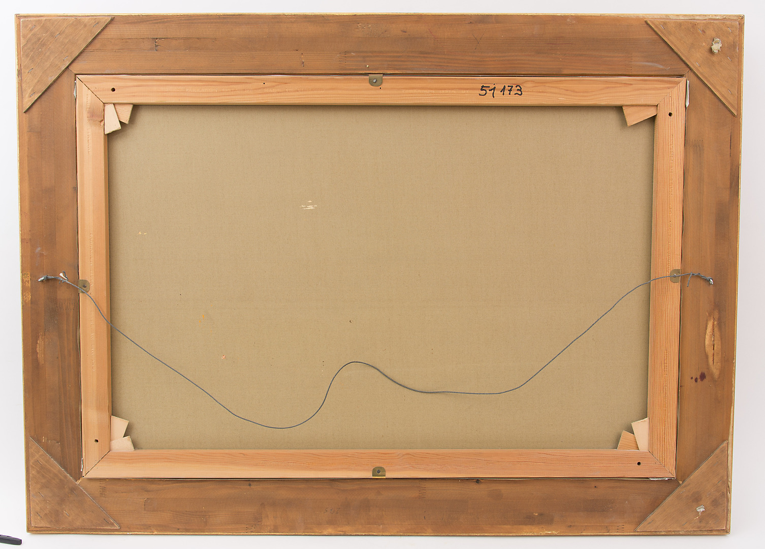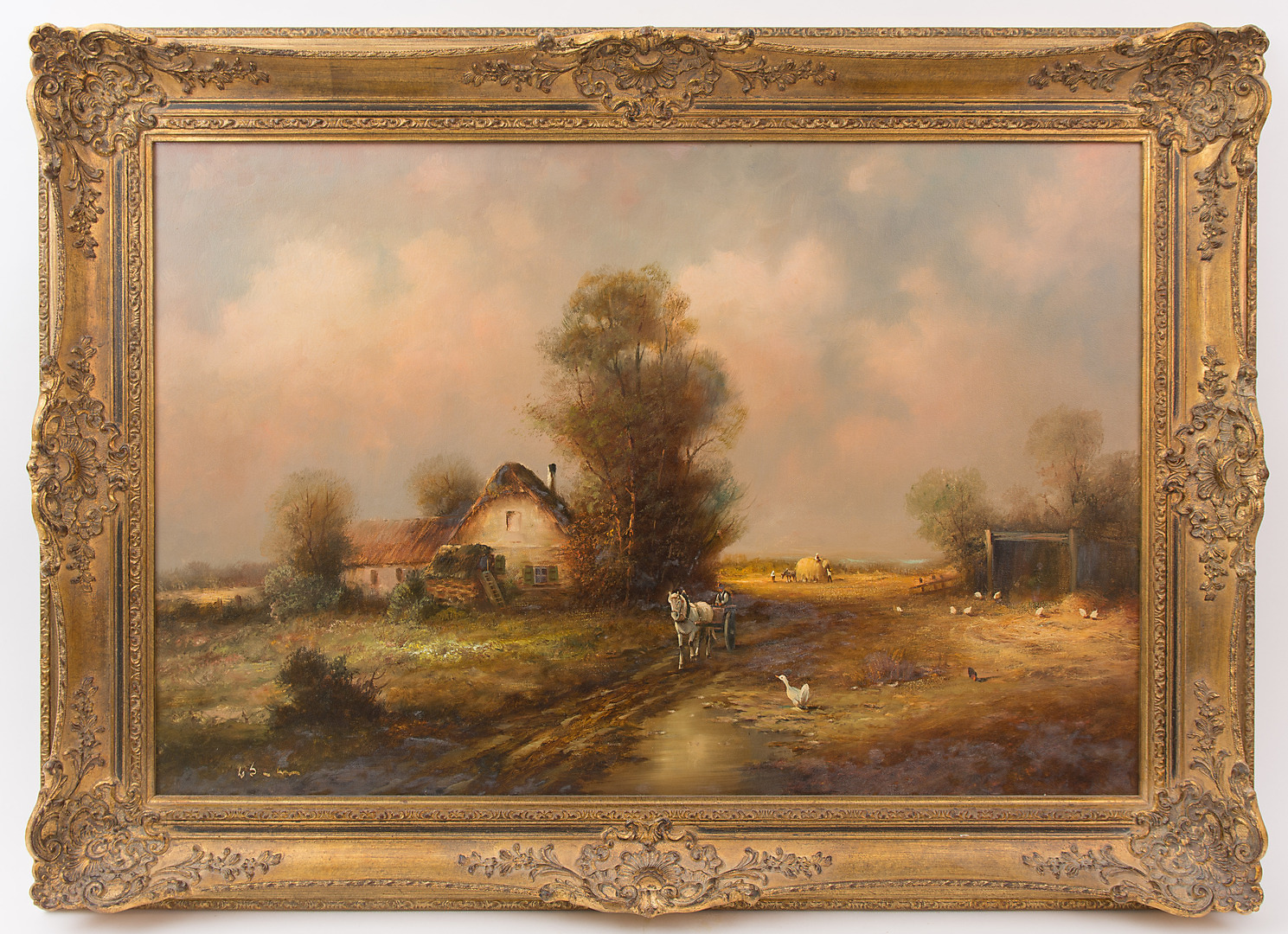 462597. UNBEKANNTER KÜNSTLER. ”Haymaking på gården,” skylt.