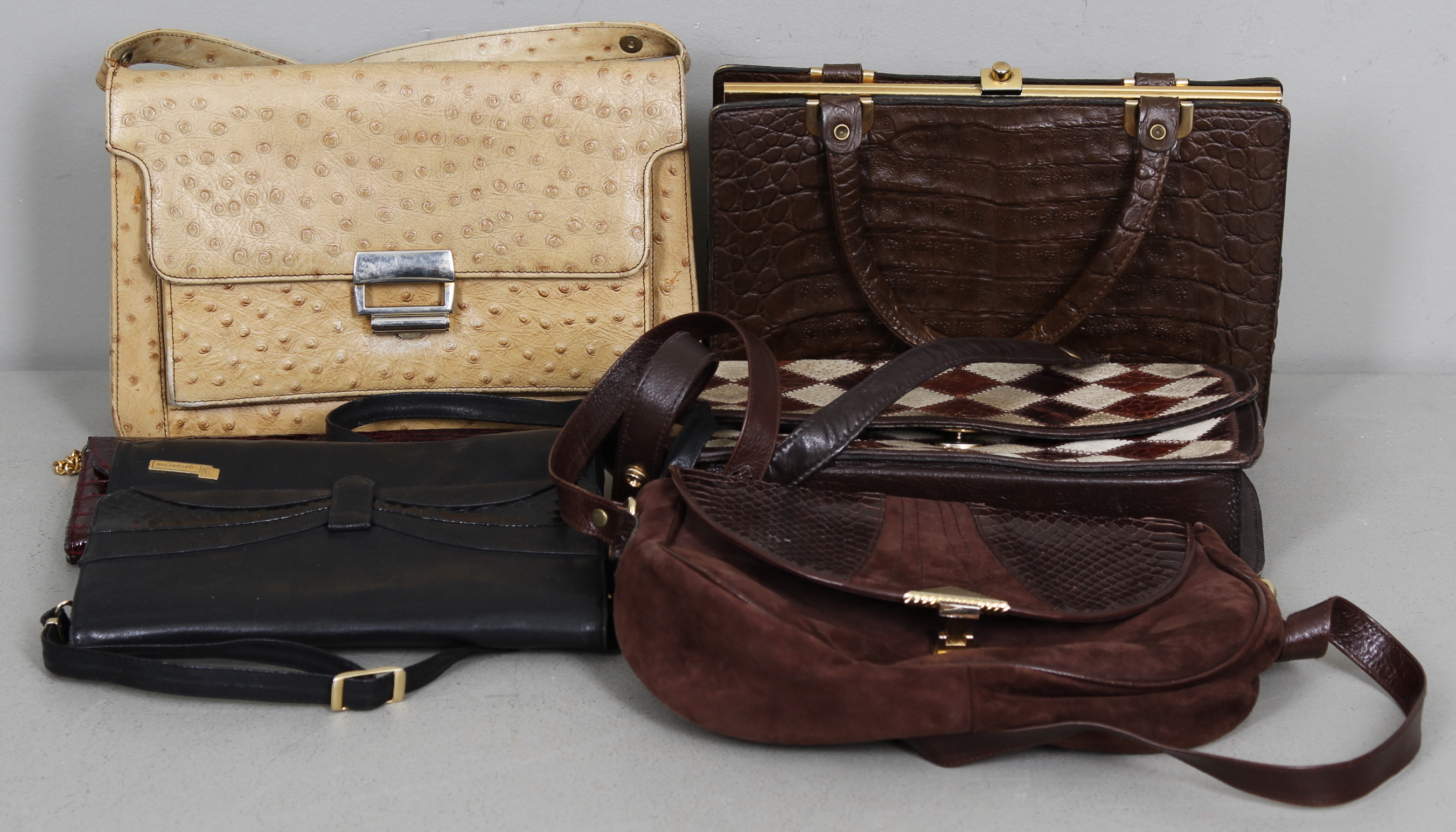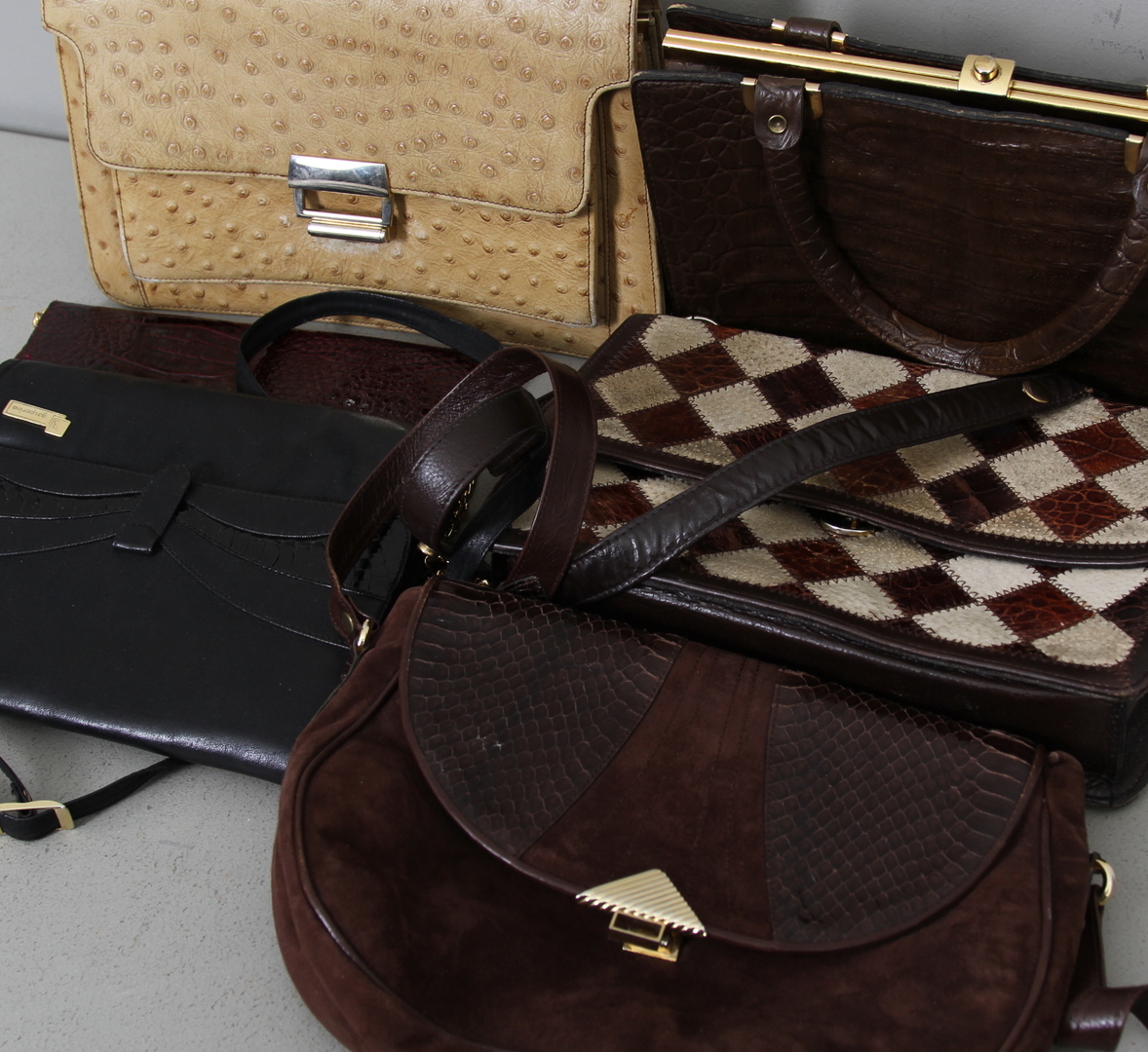 46298. HANDVÄSKOR, 6 st vissa i skinn.