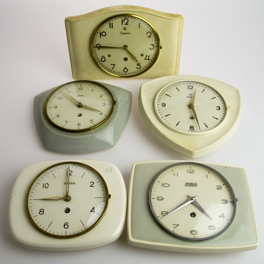 463133. KÖKSKLOCKOR, 5 stycken, porslin.