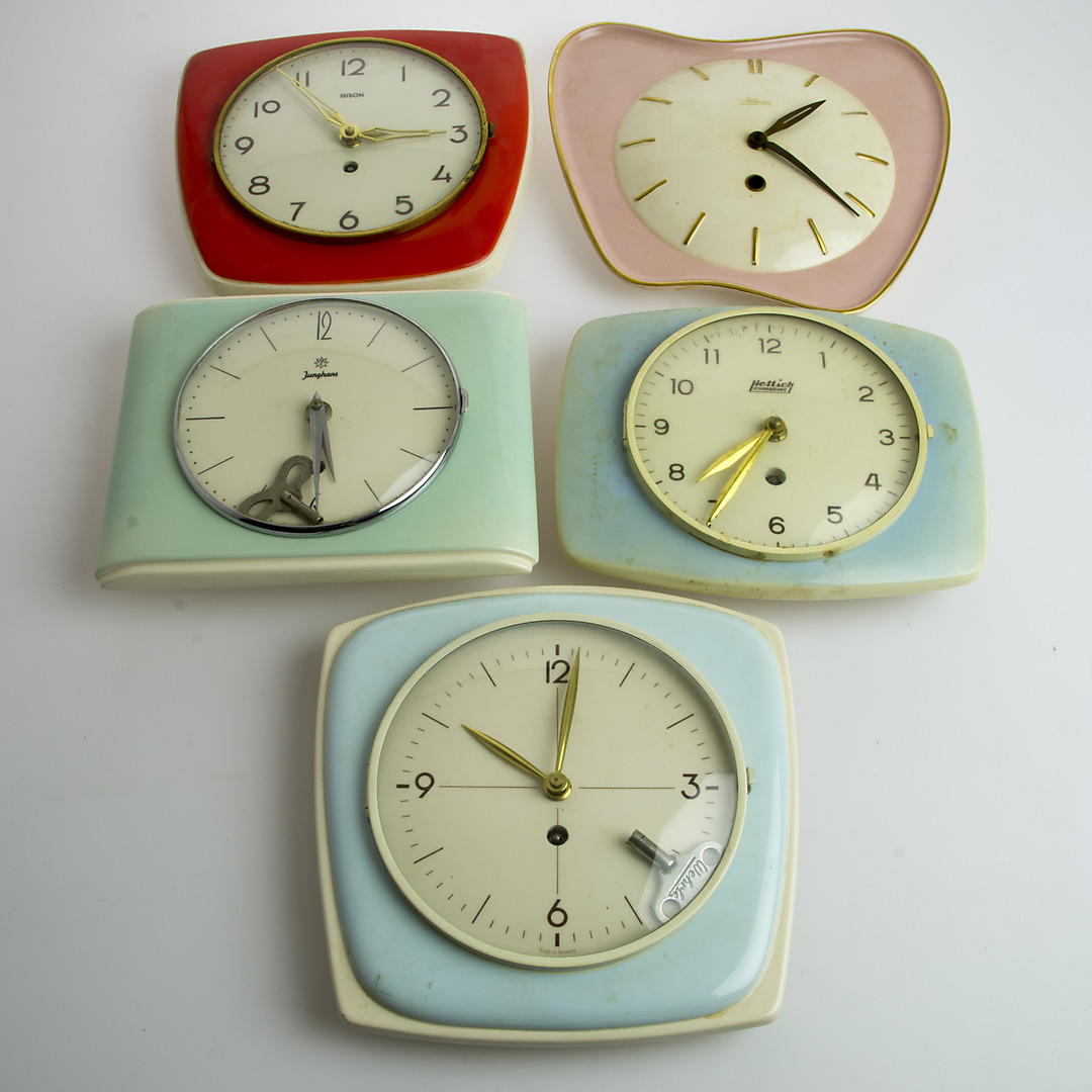 463153. KÖKSKLOCKOR, 5 stycken, porslin.
