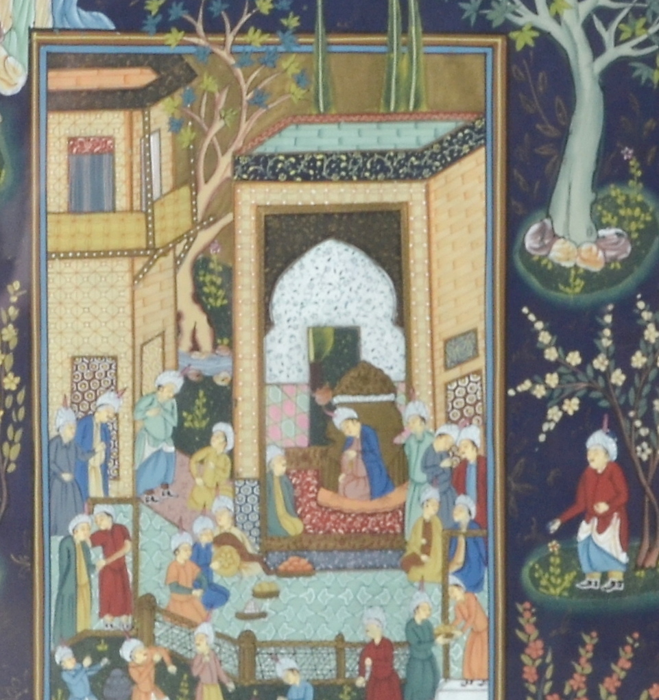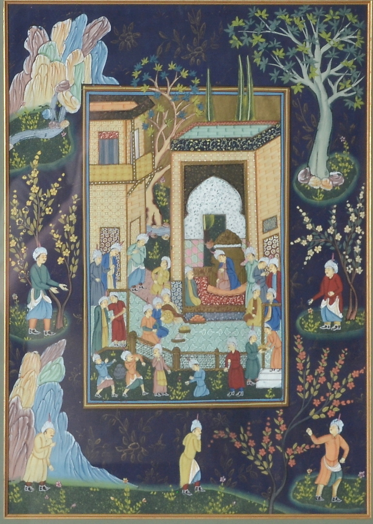 463298. OKÄND KONSTNÄR. Persisk textilmåleri, 1900-talets senare hälft.