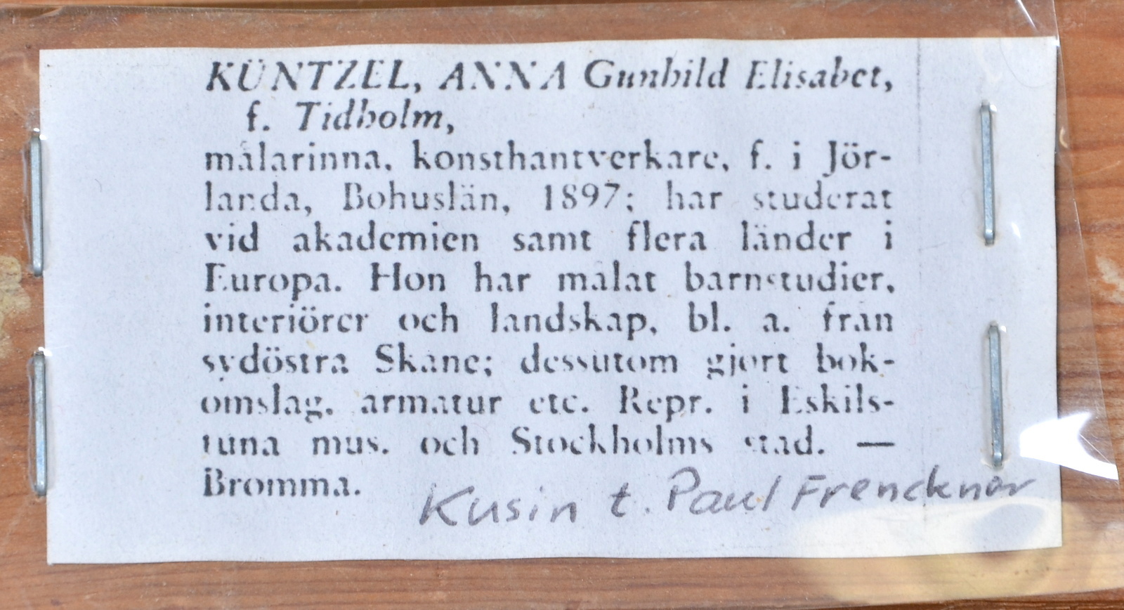 463369. ANNA KÜNTZEL. Olja på pannå.
