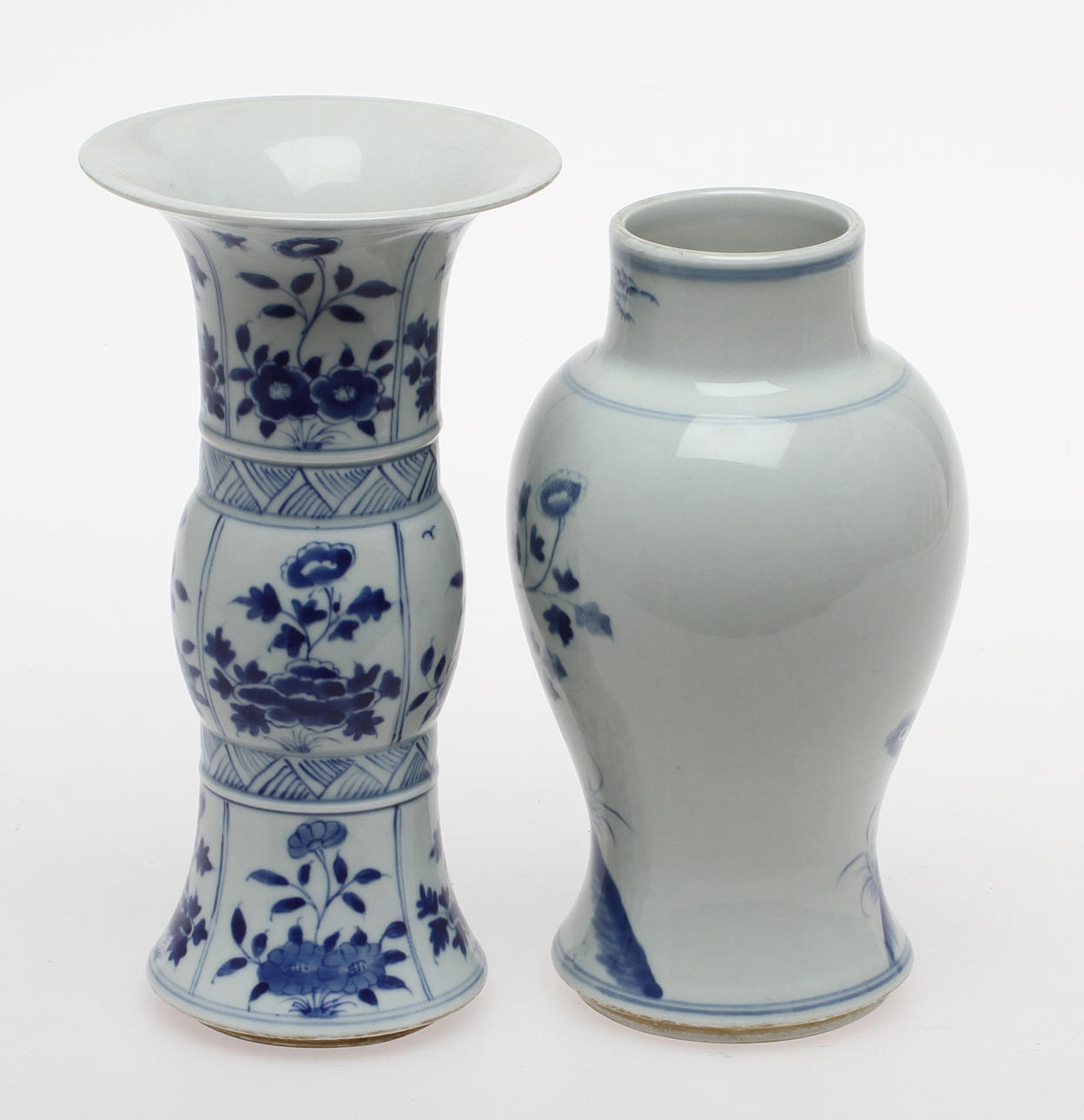 Underglasyr blå, höjd 21 resp. 22,5 cm.