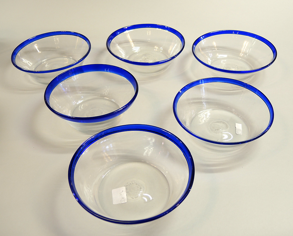 463887. 6 SMÅ BIEDERMEIER GLASSKÅLAR.
