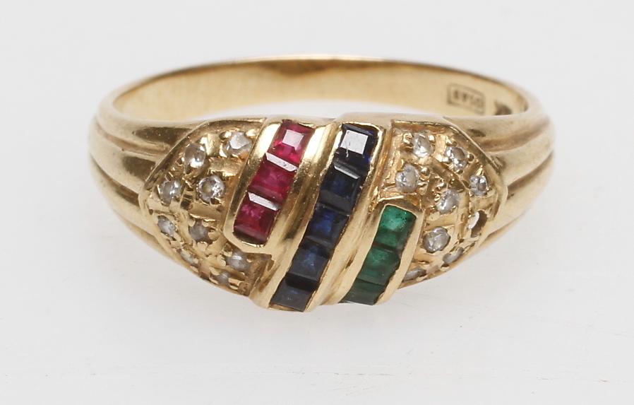 464225. RING MED STENAR, 18k guld, vikt ca 3 gr.