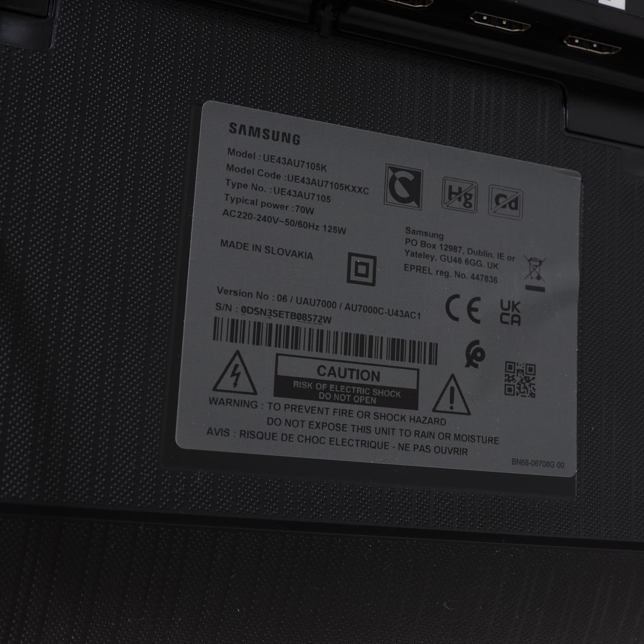 Höjd med benställning 63 cm, bredd 96,5 cm. Fjärrkontroll medföljer.