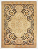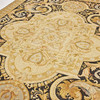 Pastellbrun botten med polykrom dekor av en stor medaljong med blombuketter. Bred bård med kartuscher med blommor. ca 365x268 cm.