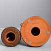 Keramik. Höjd inklusive lampskärmar 35-37 cm.