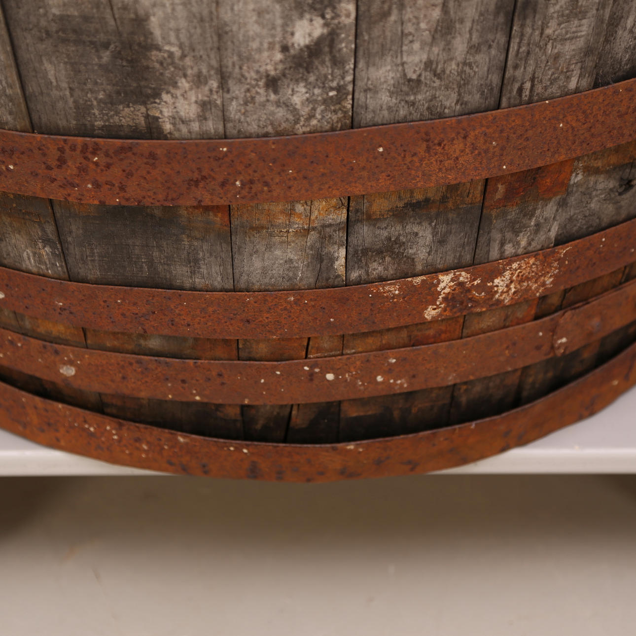 Höjd 144 cm. Diameter toppen 63 cm. Plugg saknas. Locket med text.
