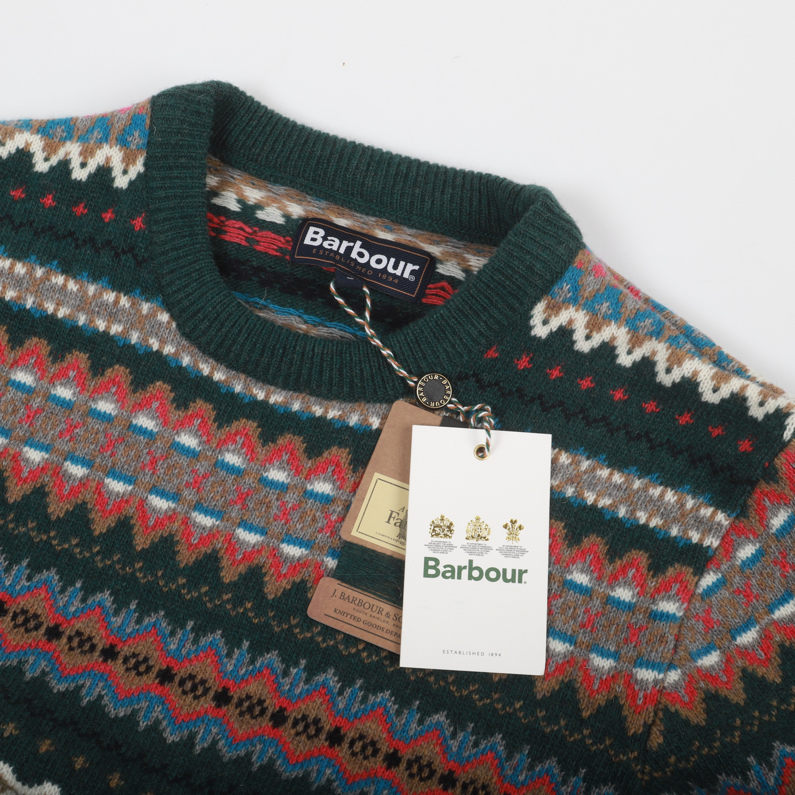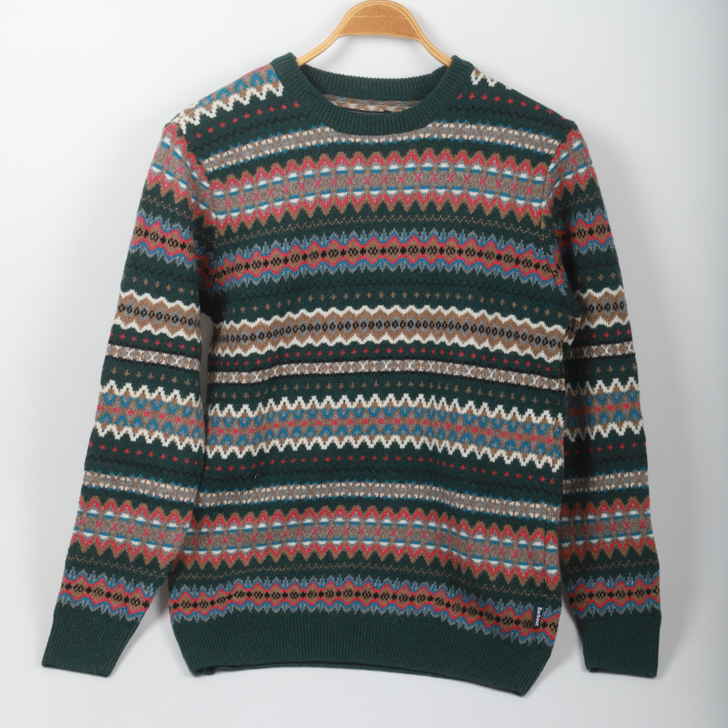 4651879. STICKAD TRÖJA, "Fairisle Crew", ull, Barbour, England.