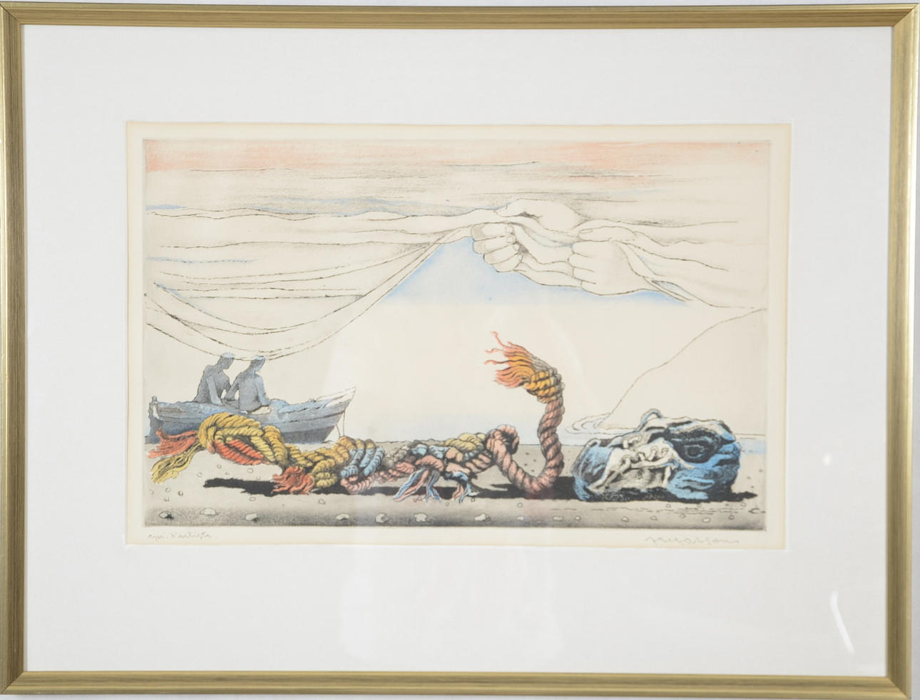 Surrealistisk strandbild. Signerad och numrerad epreuve d'artiste. 32x52 cm.