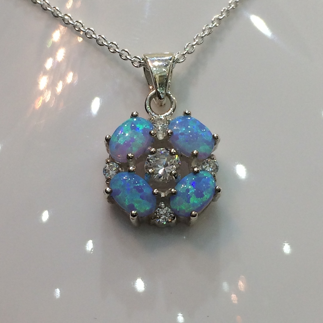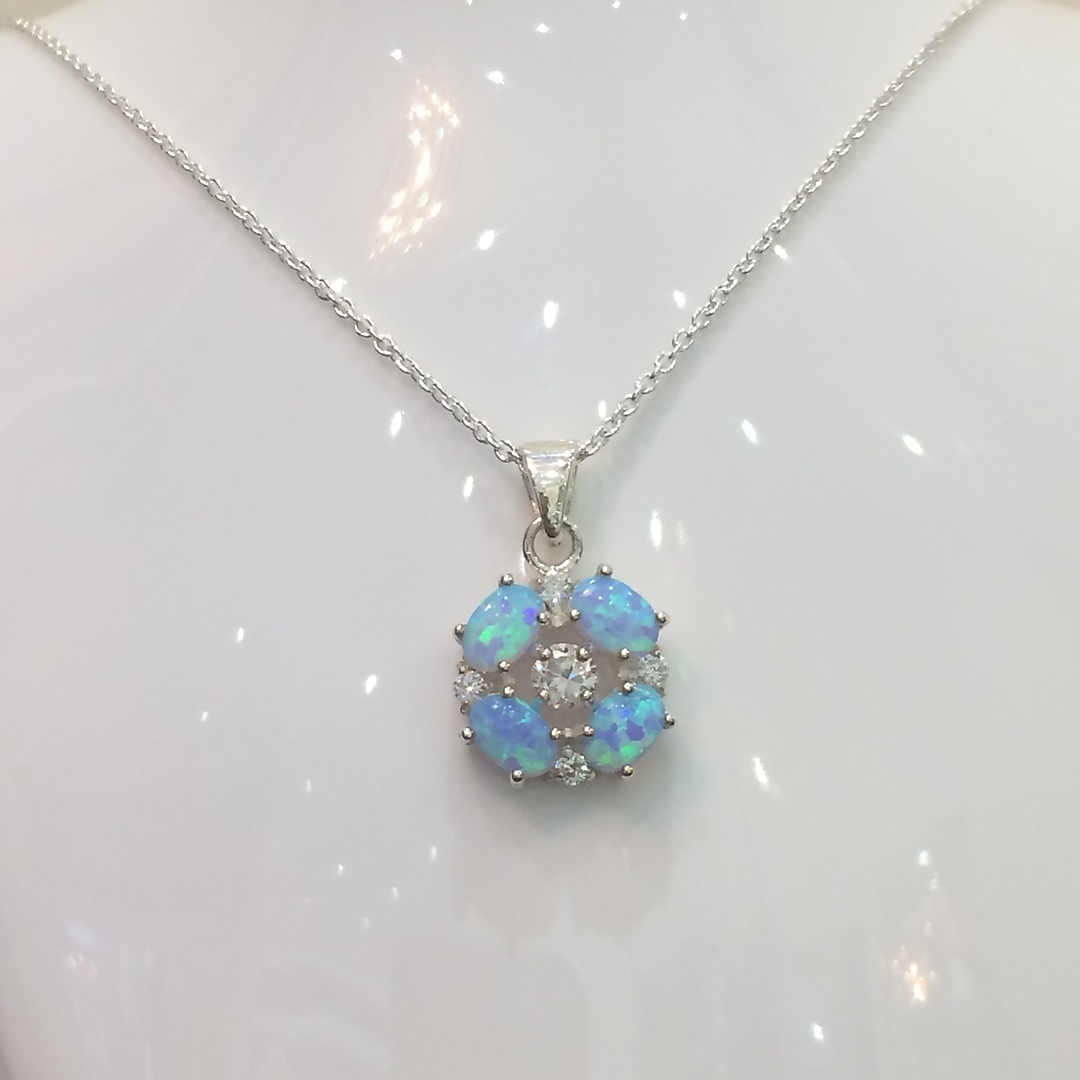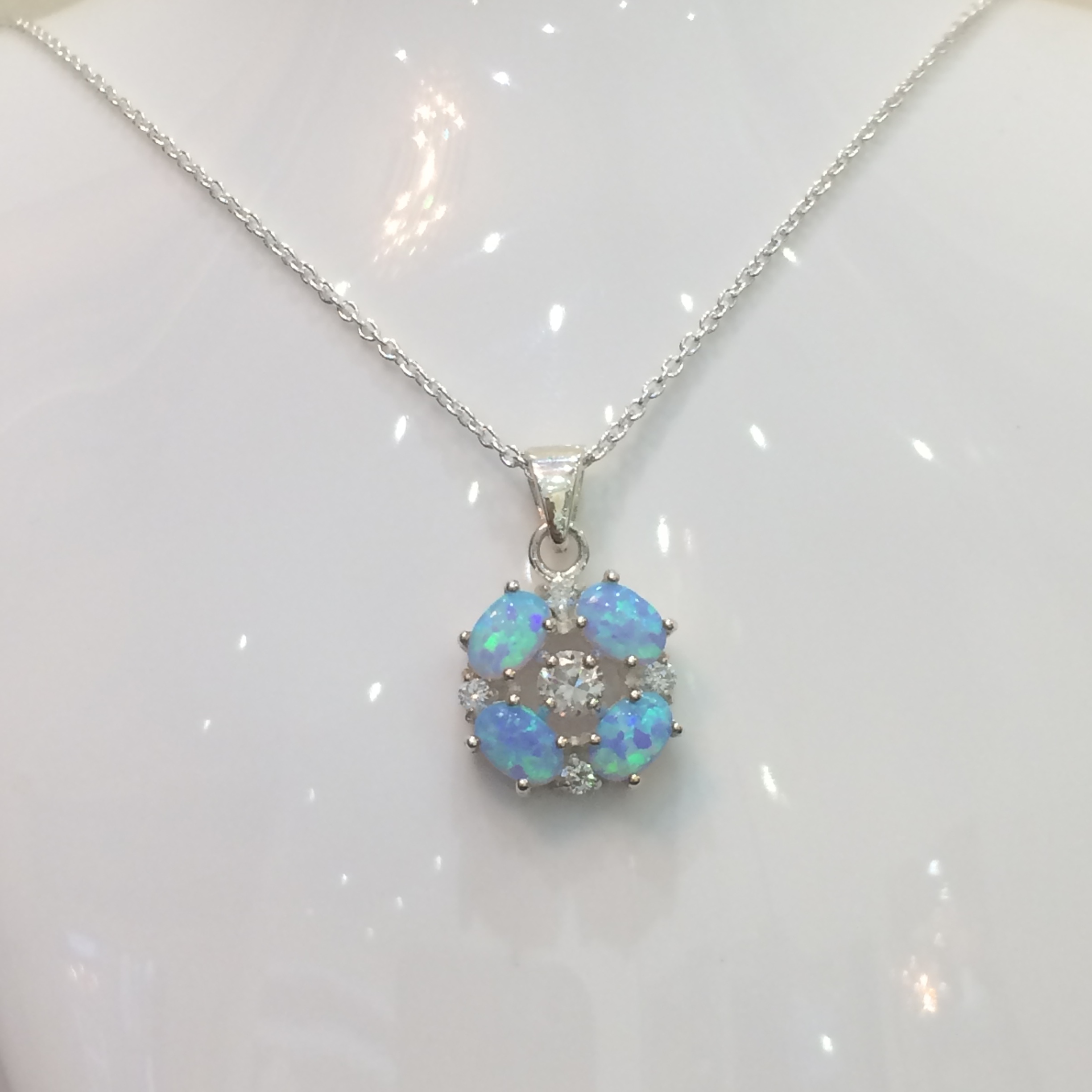 465623. BLÅ OPALIT HÄNGE OCH KEDJA.