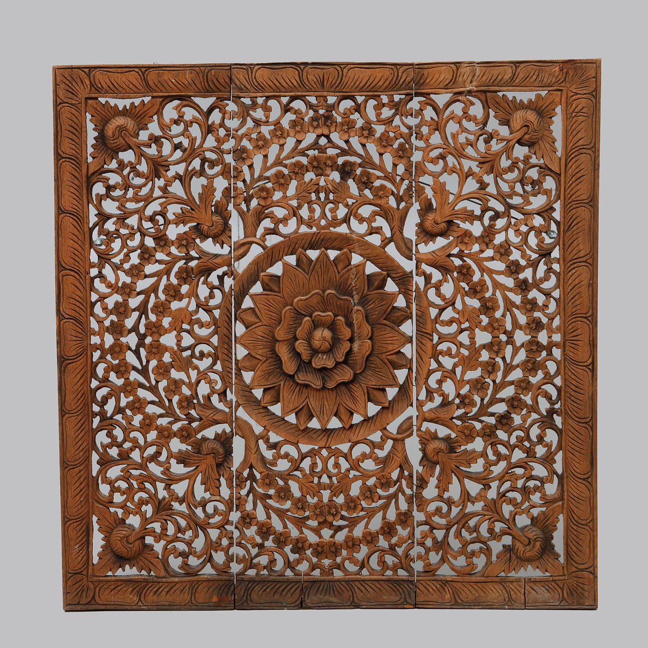 Utskuret trä med dekor i form av blommor. 88 x 90 cm.