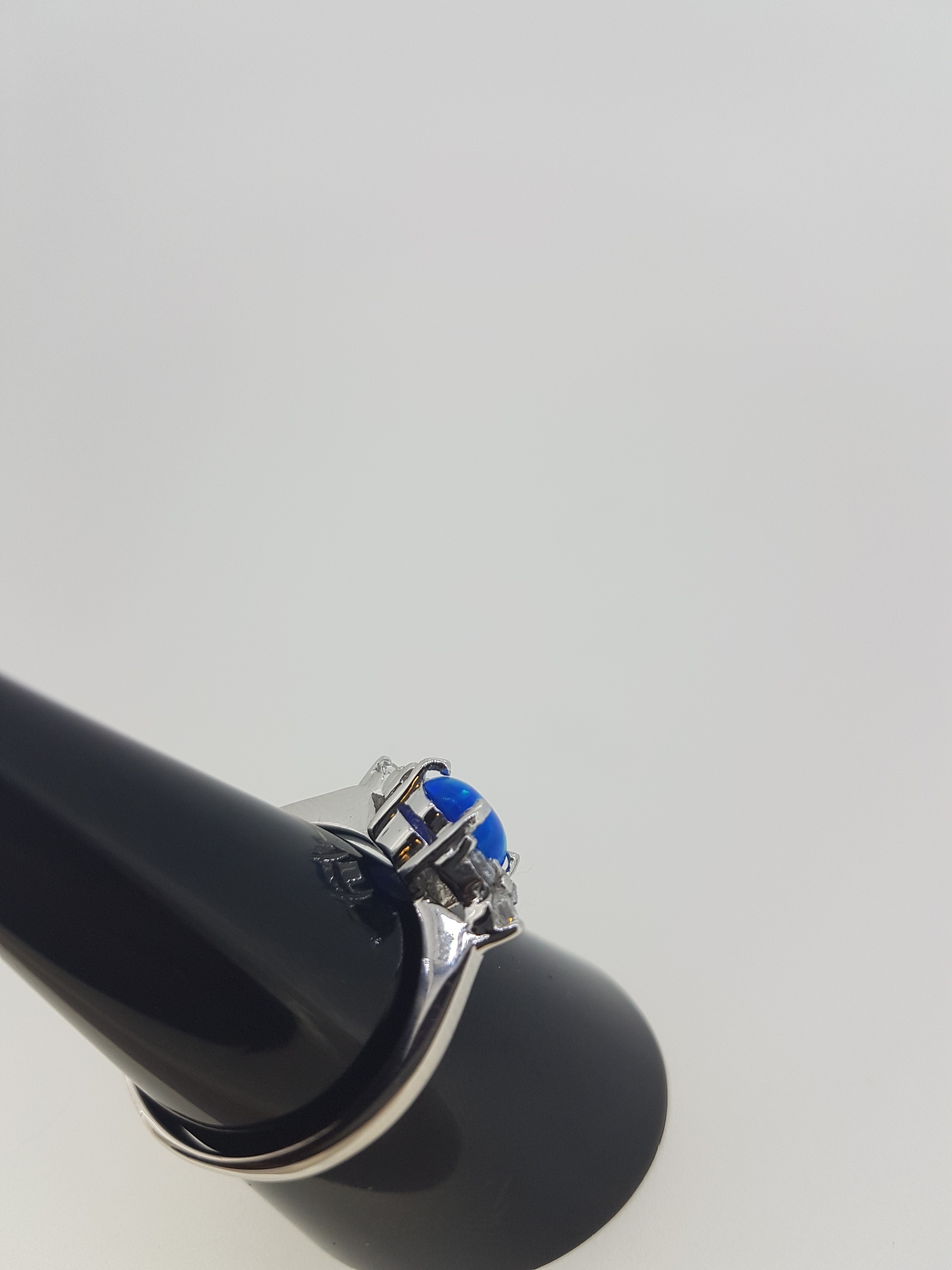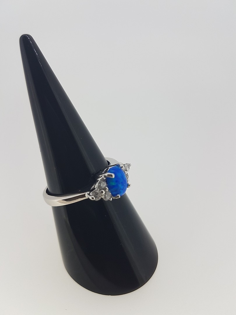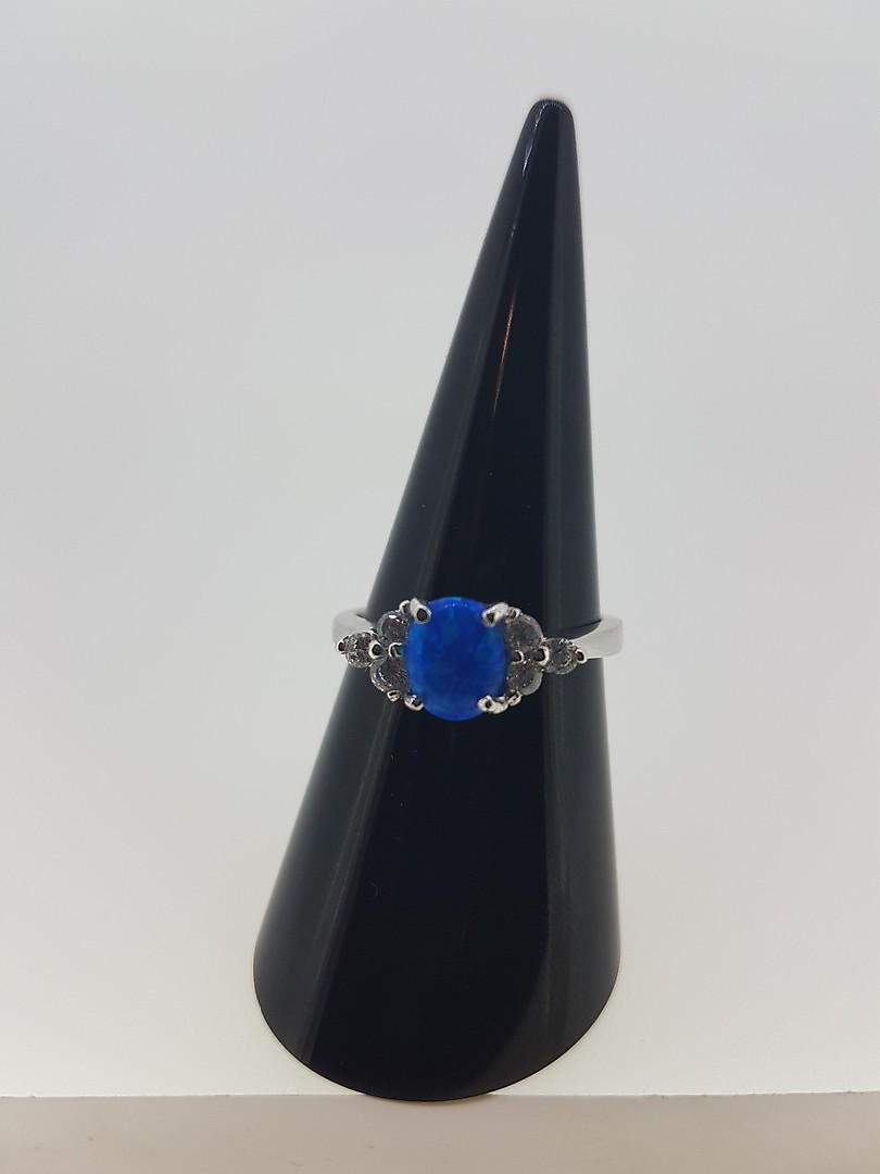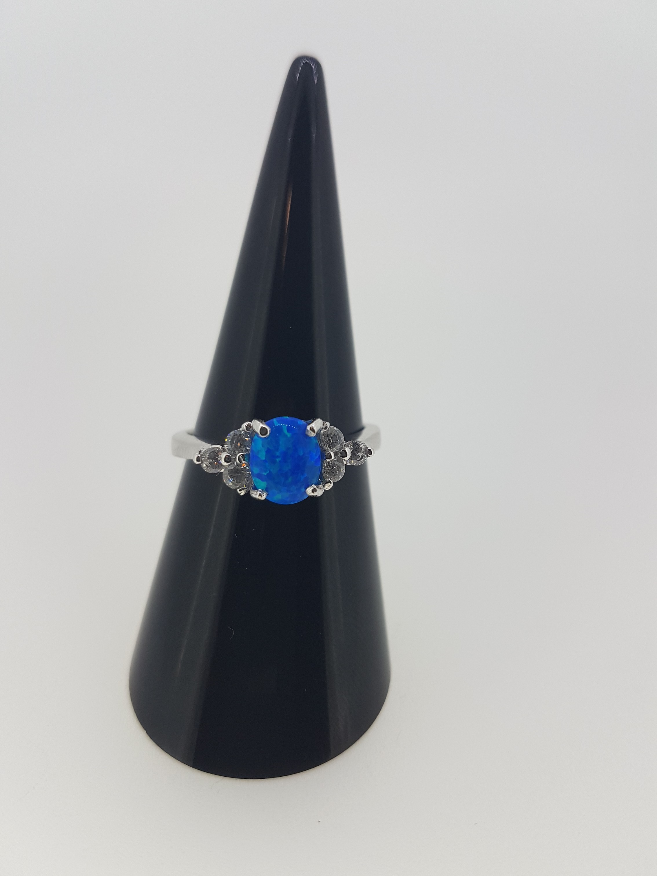 466054. SILVER CZ & OVAL BLÅ OPALIT RING.