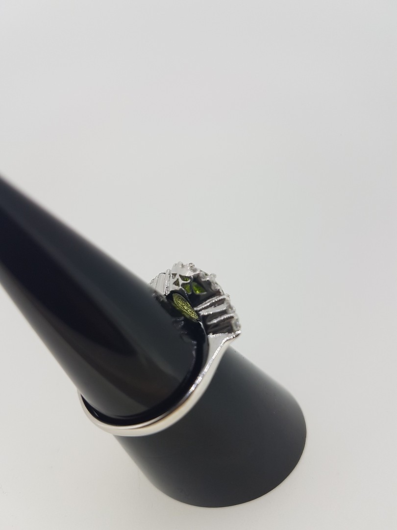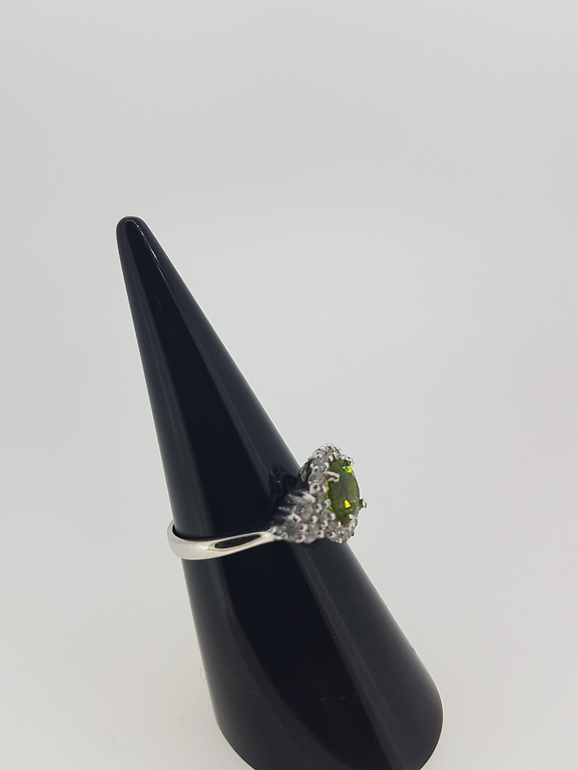 466079. SILVER CZ & ÄKTA PERIDOT RING.