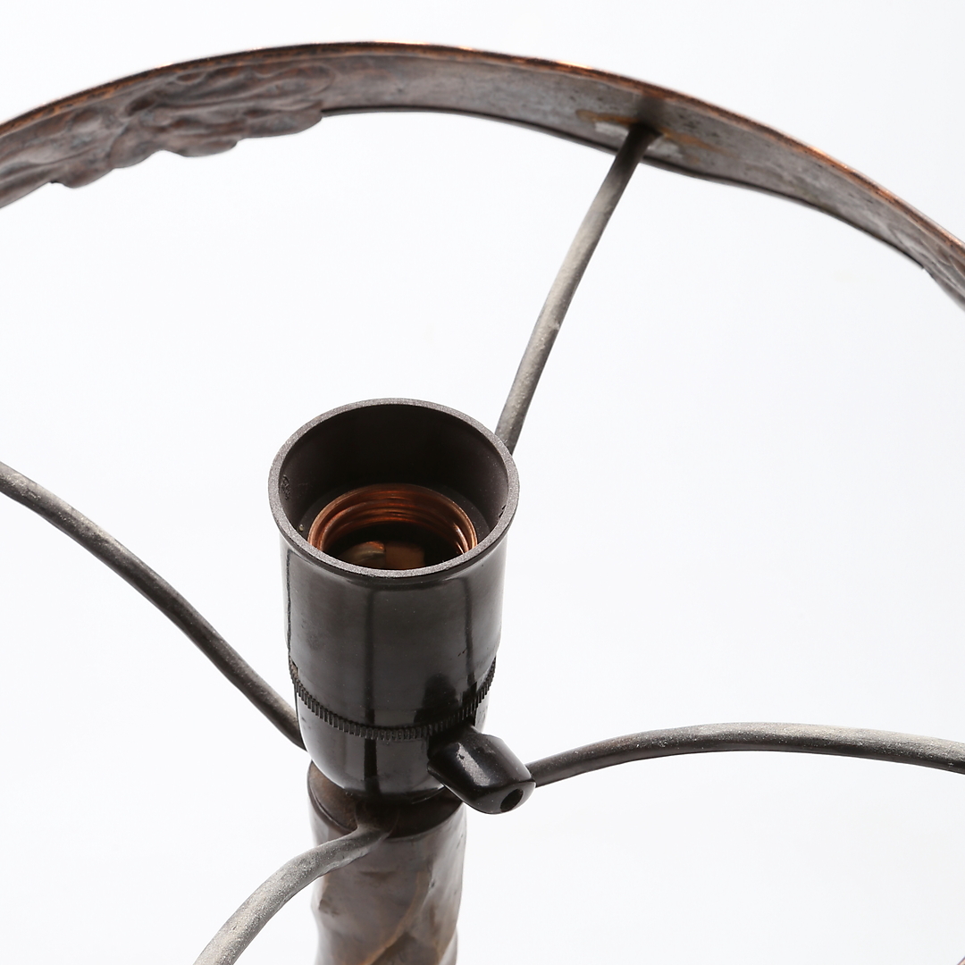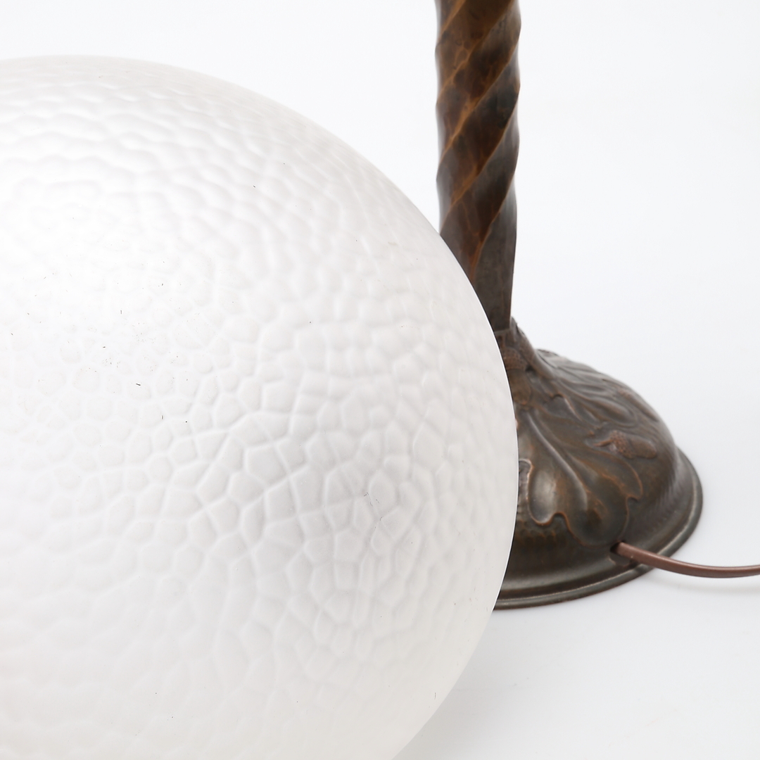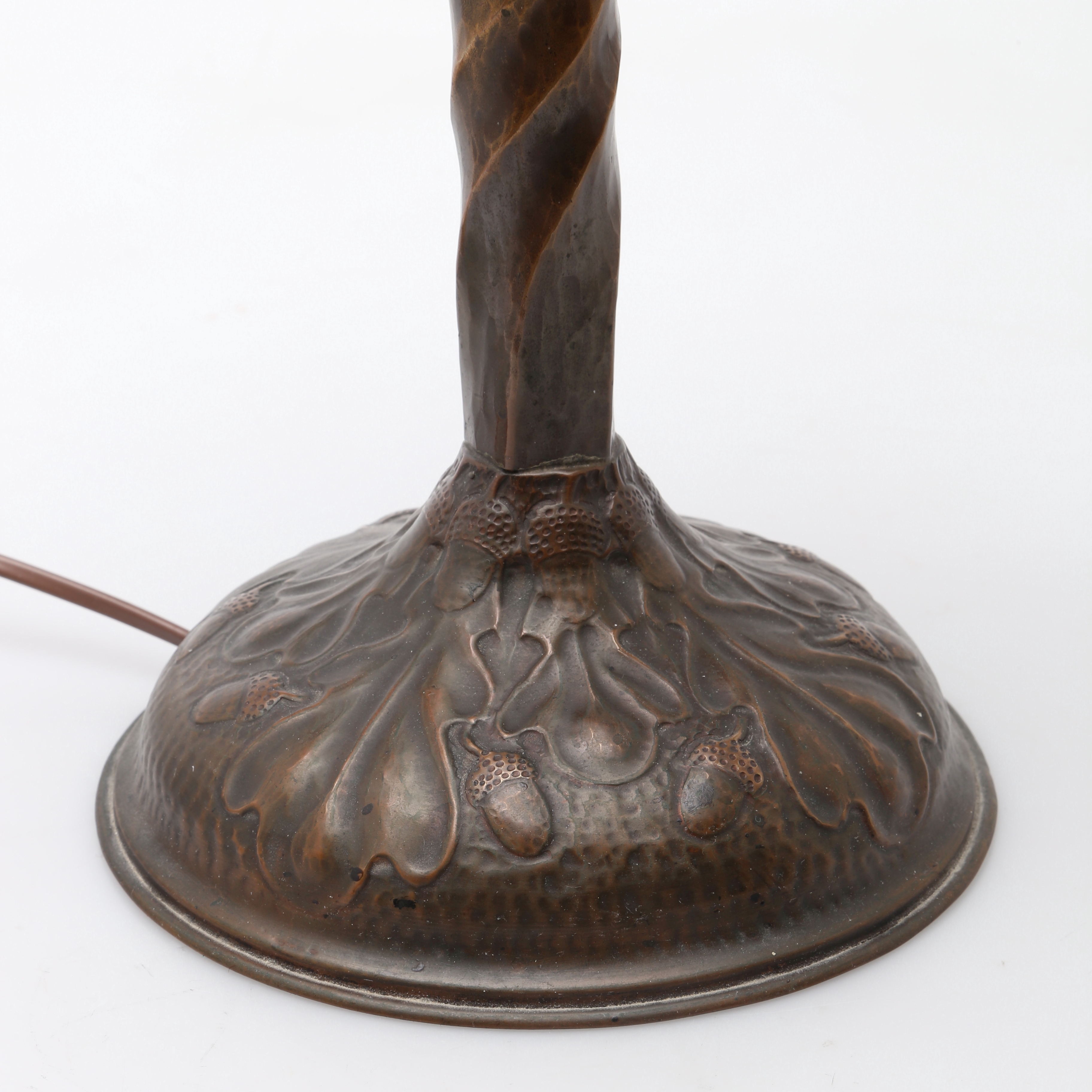 466254. BORDSLAMPA av driven koppar och glas, jugend ca 1900.