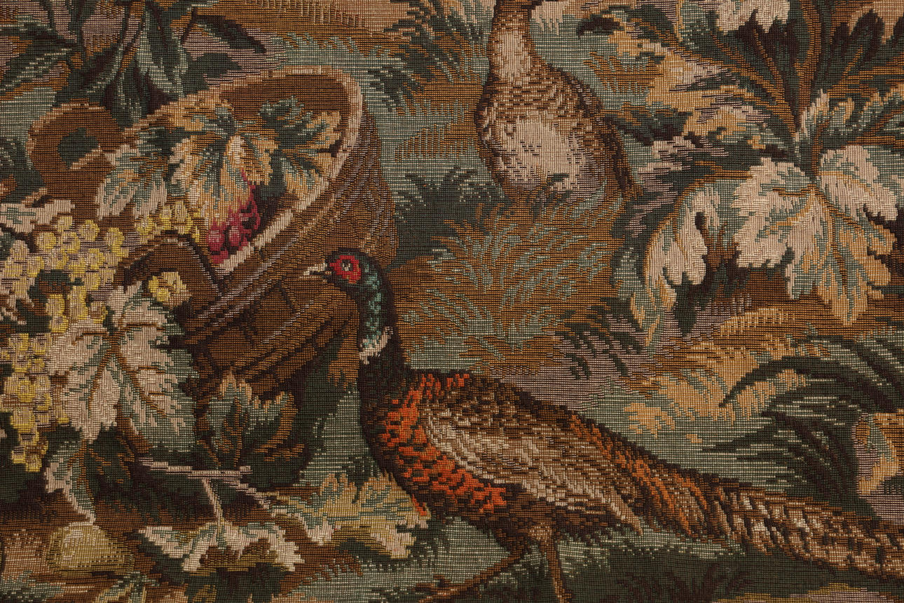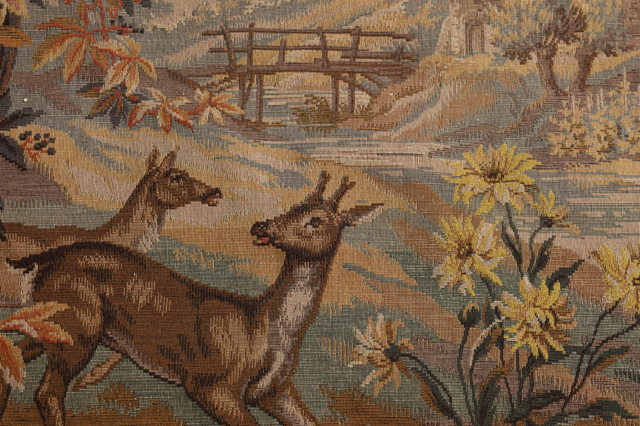 Avbildar djur i en glänta i en skog, 215cm x 152cm.