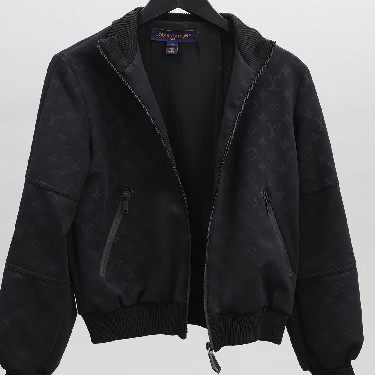 Louis Vuitton-jacka med dragkedja, två fickor och monogrammönster. Ribbad krage, ärmar och nederkant. Modell 1A9EPY, storlek 34.