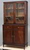 Fanerat i mahogny, spröjsat fönster, skåp inredda med hyllor. Längd 90, bredd 41, höjd 168 cm.