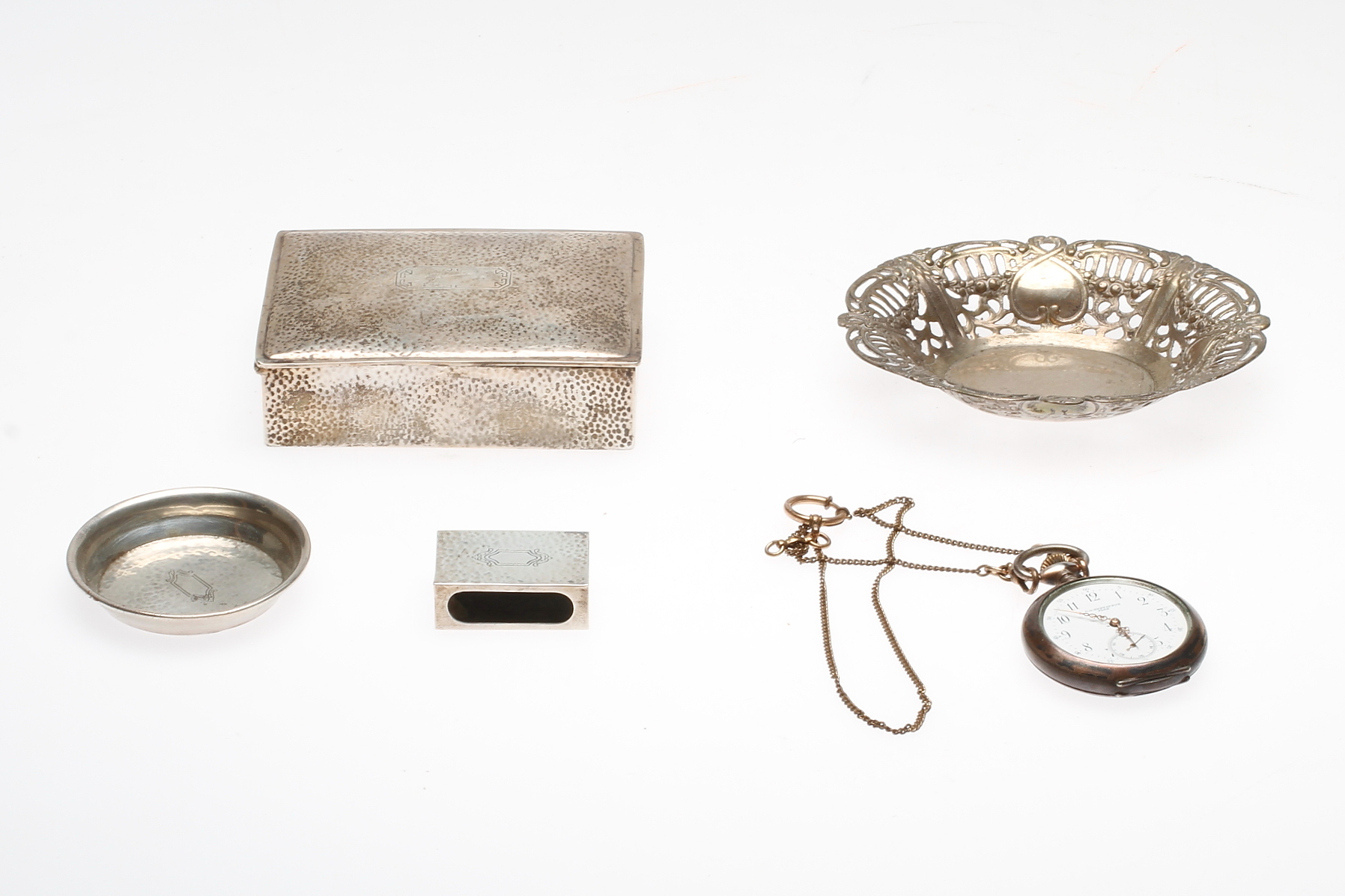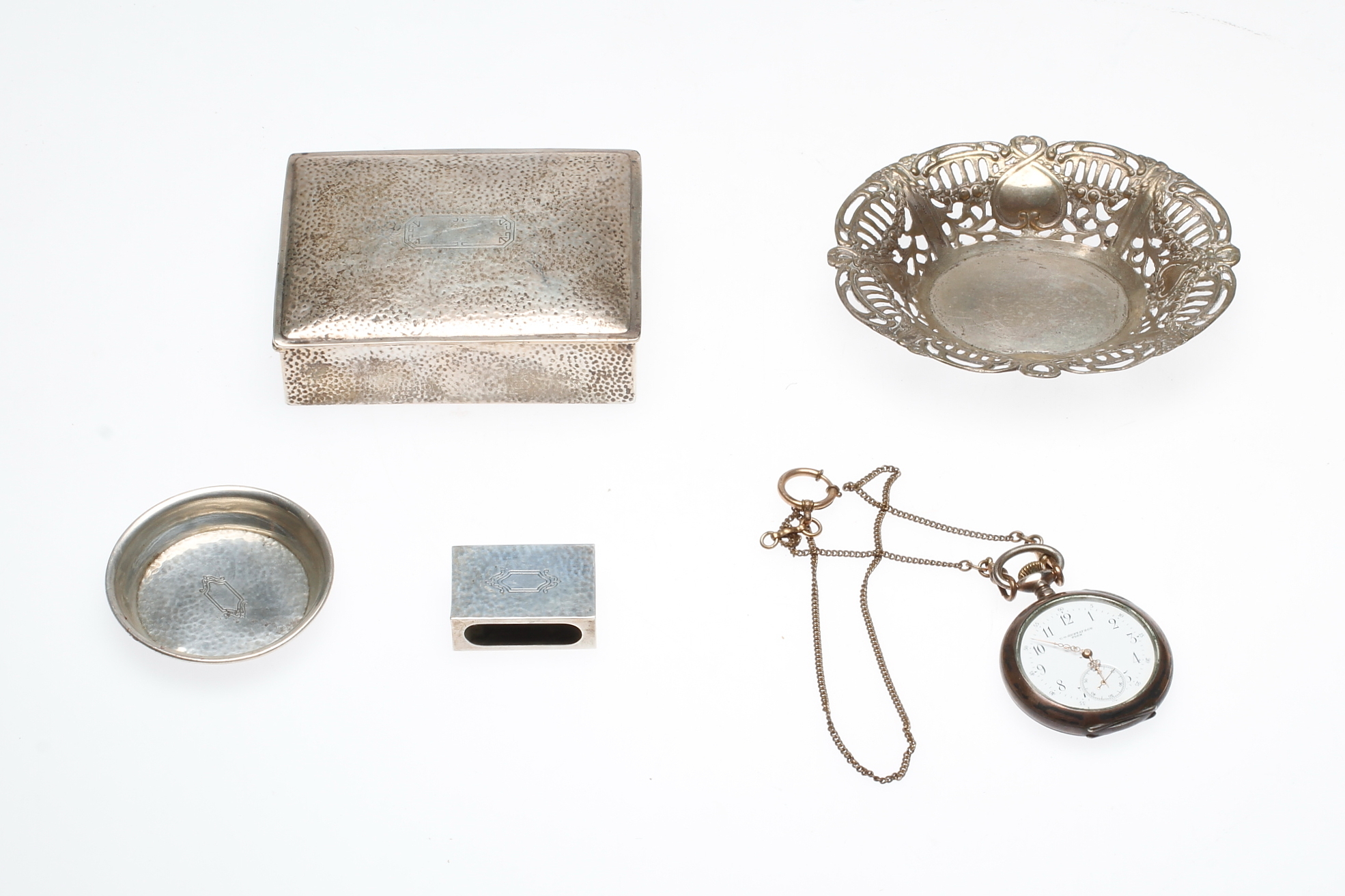 467535. SILVERFÖREMÅL samt FICKUR, 5 delar, silver.