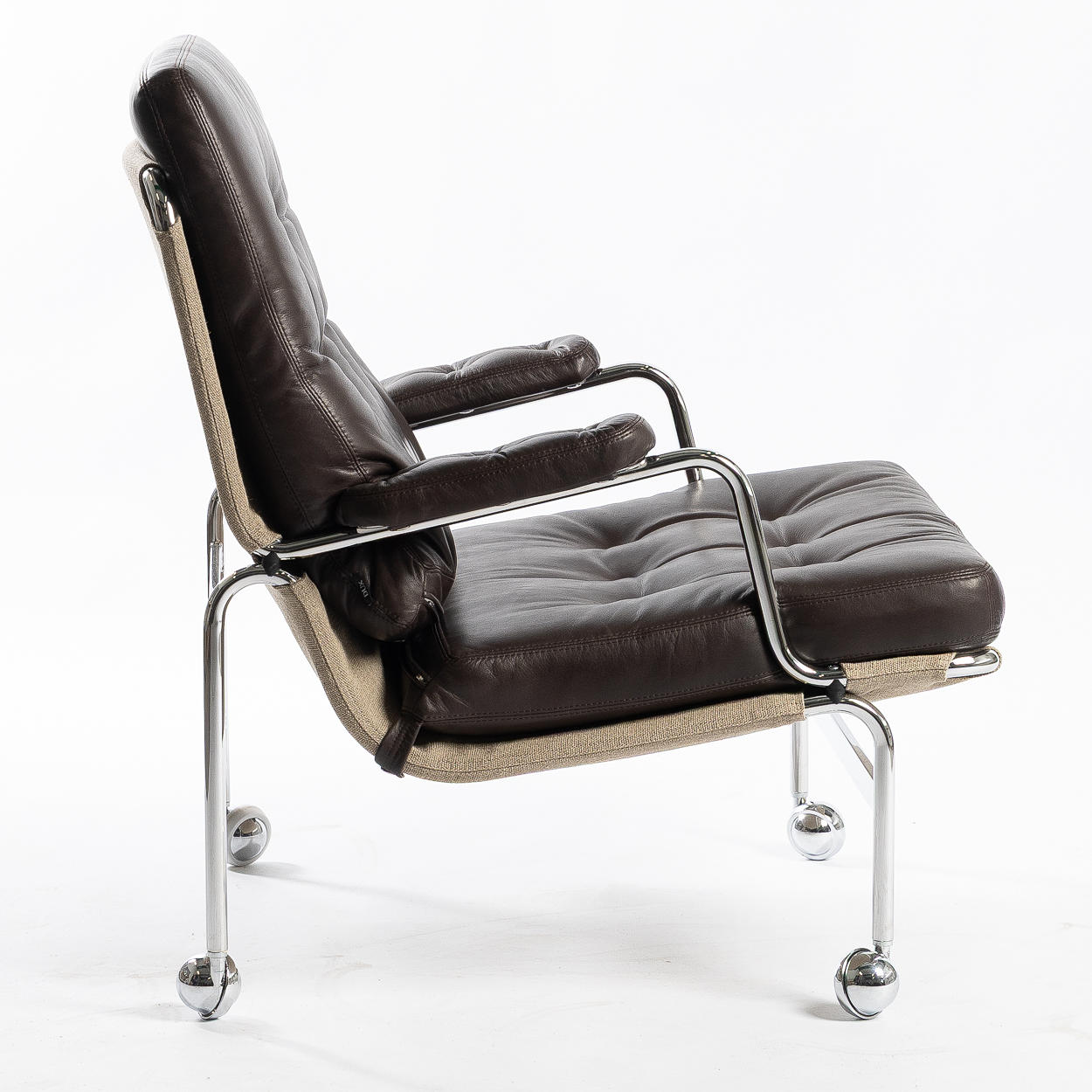 Läderklädsel Dakota, kromad stomme, märkt, höjd ca 77, bredd 75, sitthöjd 36 cm.