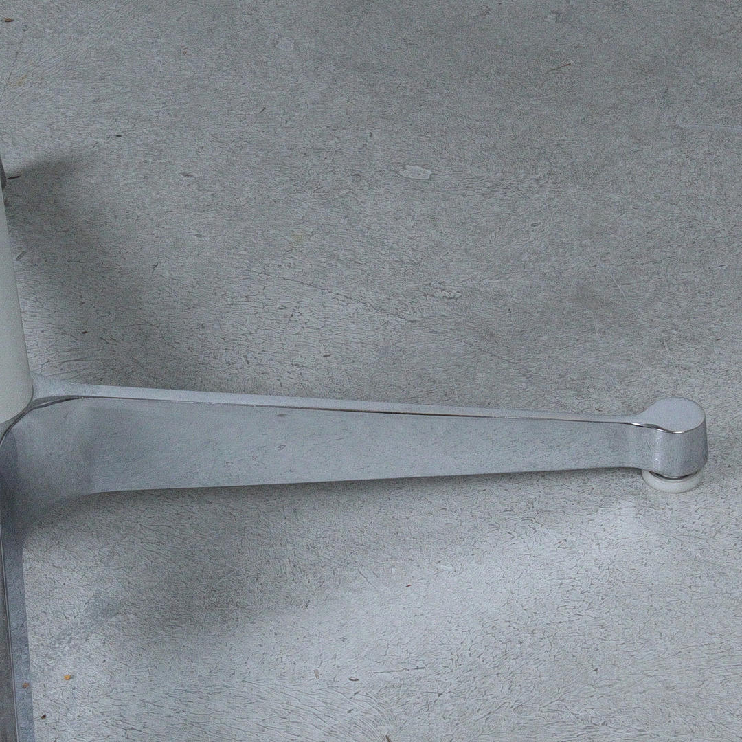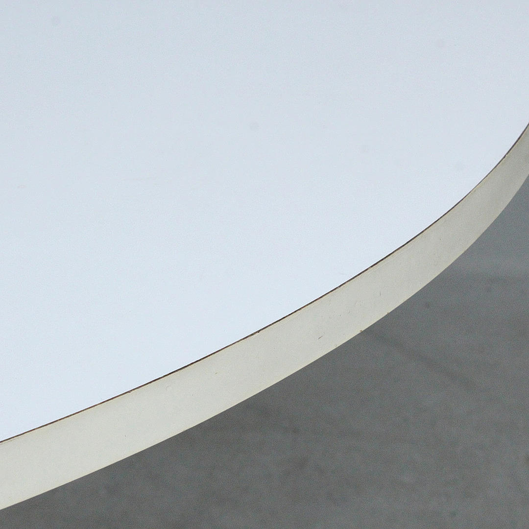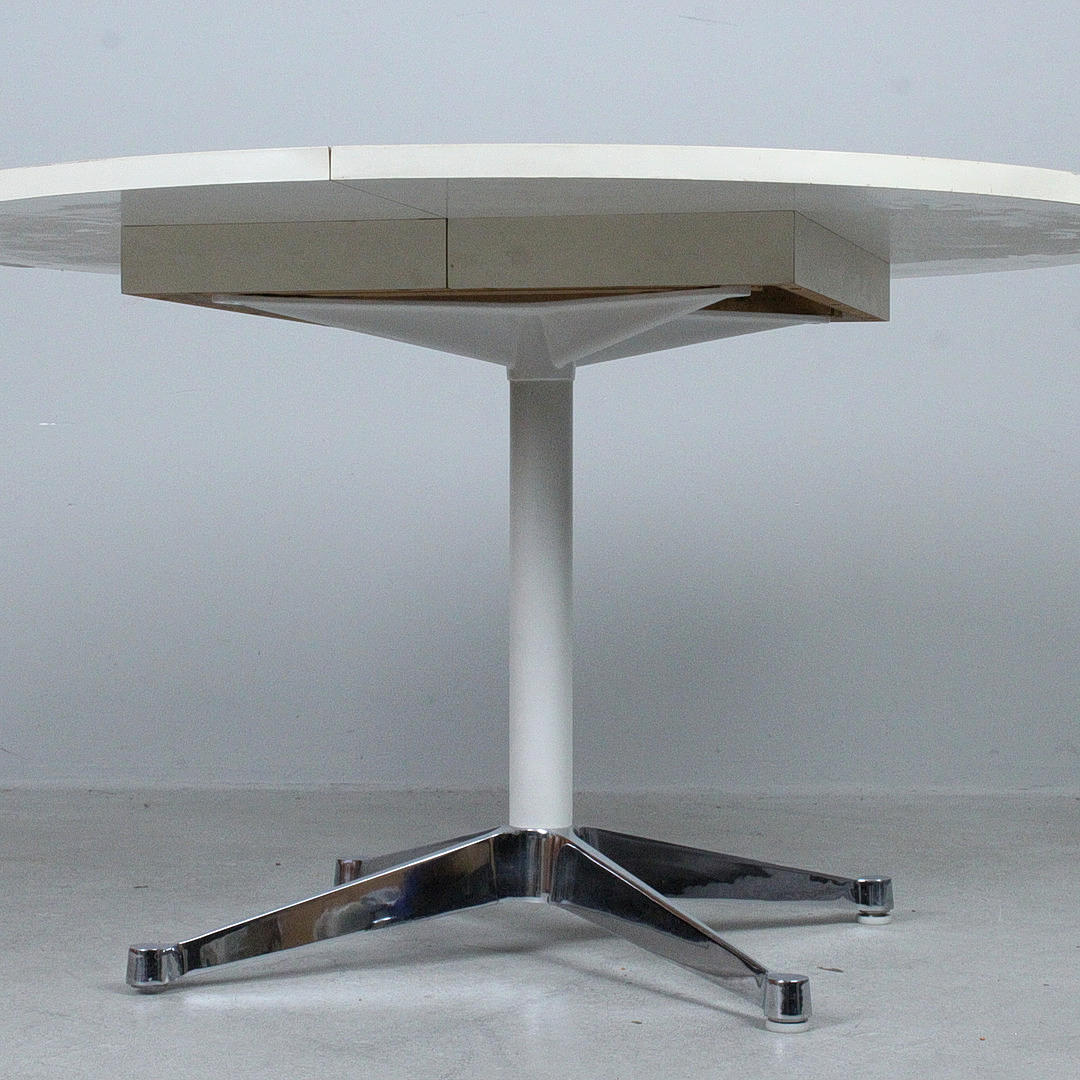 Charles & Ray Eames, runt bord/1970-talets matbord, bord med en fyrstjärnig bas av förkromat stålrör, rund träbordsskiva, belagd med vit formica,