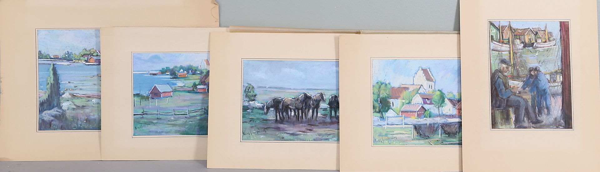 469803. KARL SUNDSTRÖM. Pasteller, 5 st, signerade.