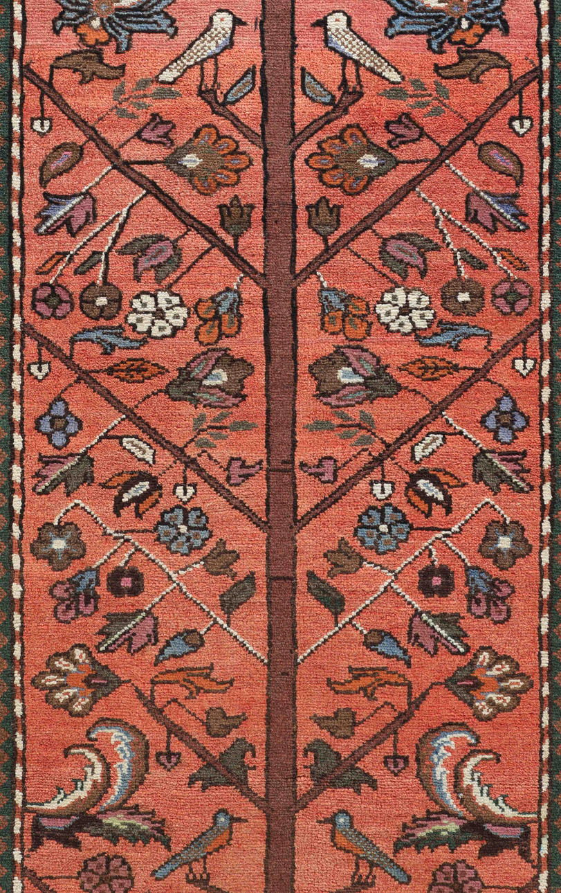 Ljusröd bottenfärg, dekor med fåglar.