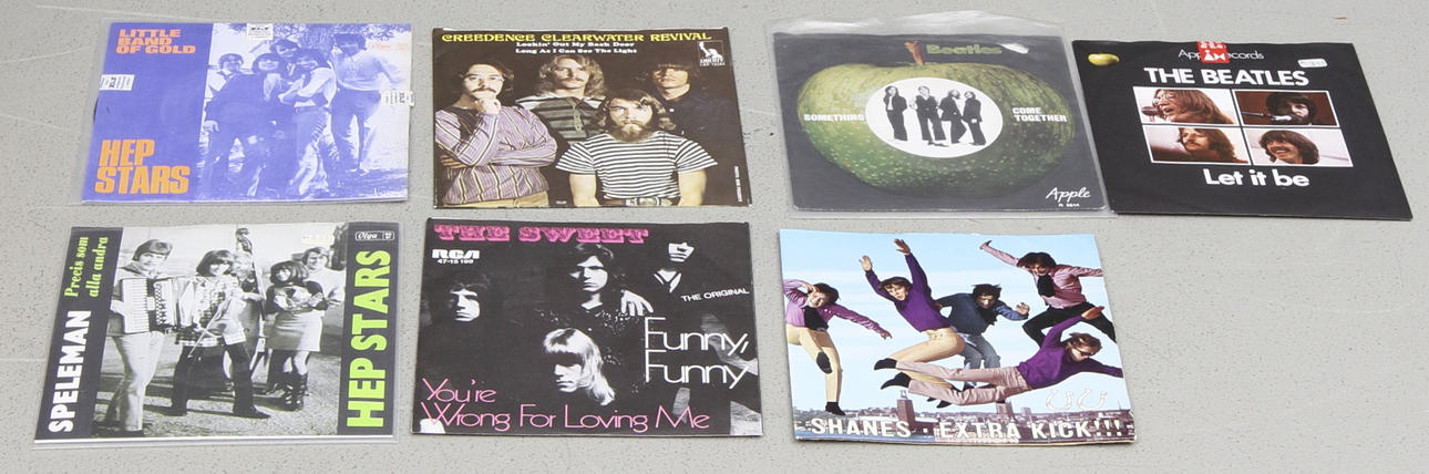 Bland annat The Sweet, Shanes, Mungo Jerry, The Beatles, Ono/Lennon, Hep Stars med flera.