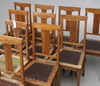 Jugendstolar i ek,Sitsen stoppad med synlig träsarg.Total höjd 94 cm.