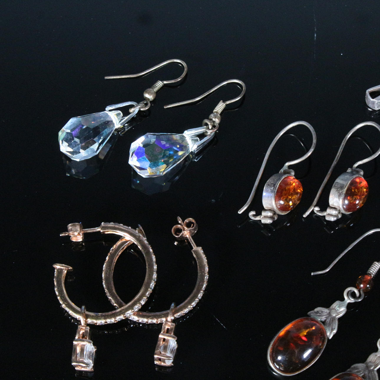 Många örhängen och en ring.