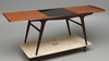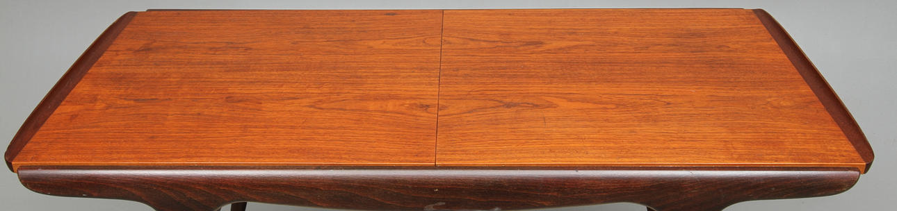 På svart mittsektion fattas 3 st träkuber under som håller skivan plant och upphöjd. Slitage, repor. Stötmärken. Fläckar.