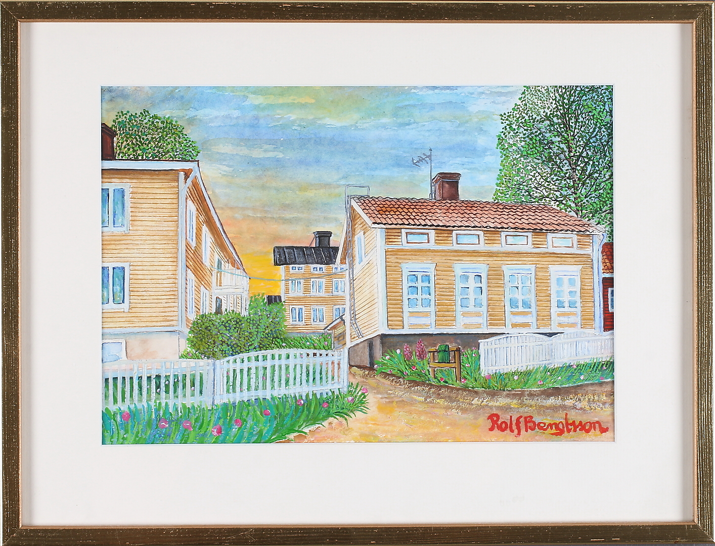 473207. ROLF BENGTSSON. Gula trähus, akvarell.