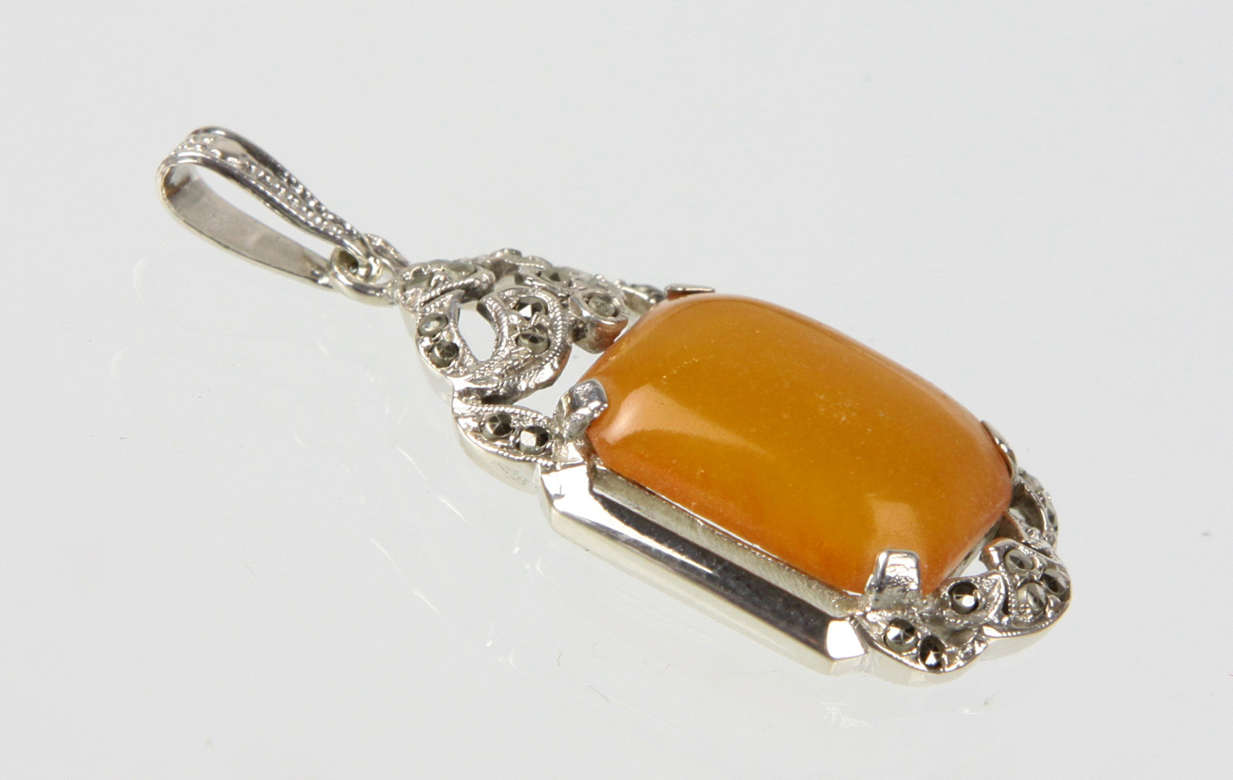 473320. AMBER HÄNGE, silver 835, omkring 1925.
