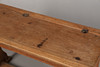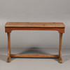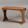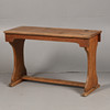 Med dubbla bläckbrunnsfack, solid topp och upphöjda på bockben förenade med en bår, 96,5 cm bred, 60 cm hög, 38 cm djup.