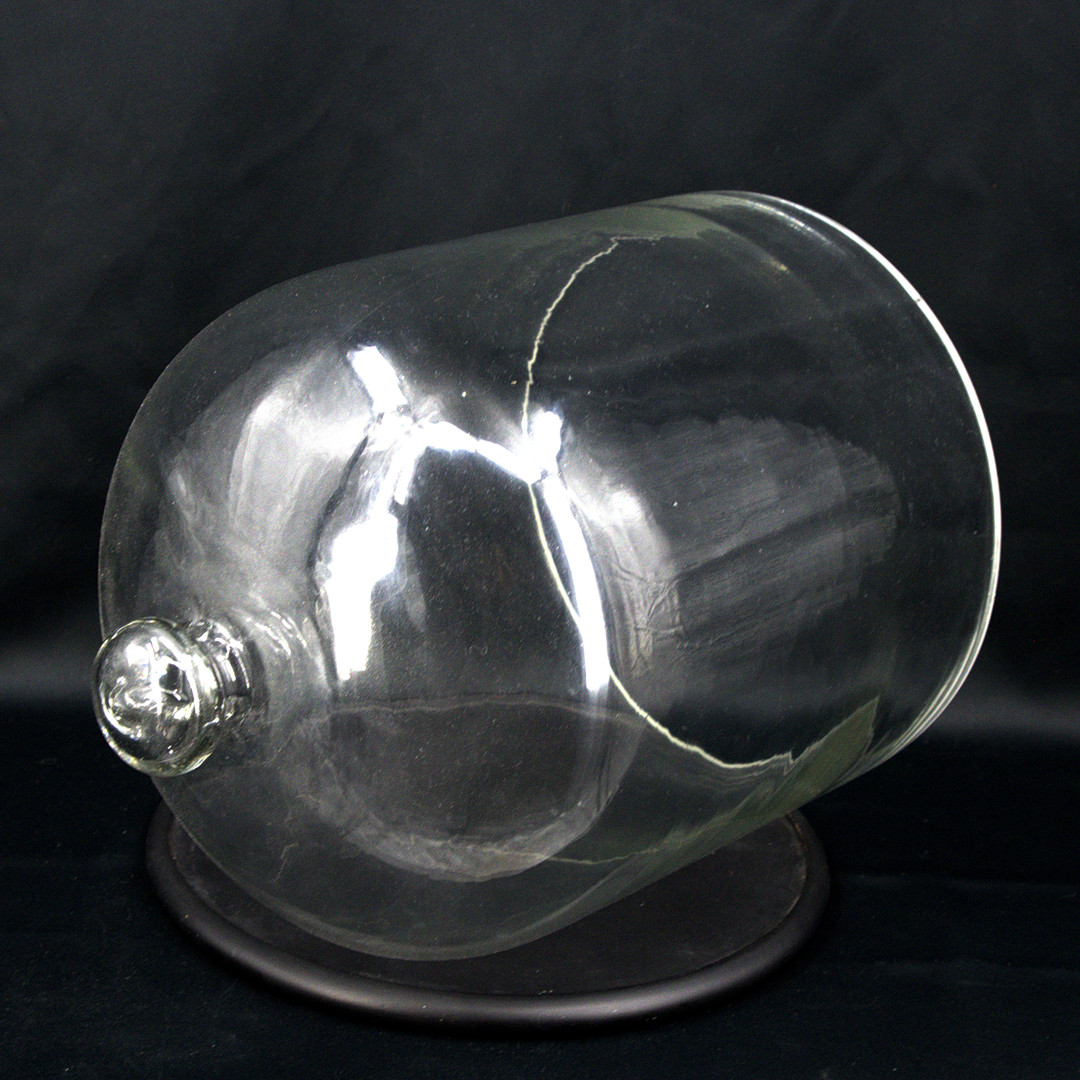 4737538. GLASKLOCKA, stor modell, på träplatta, nutida.